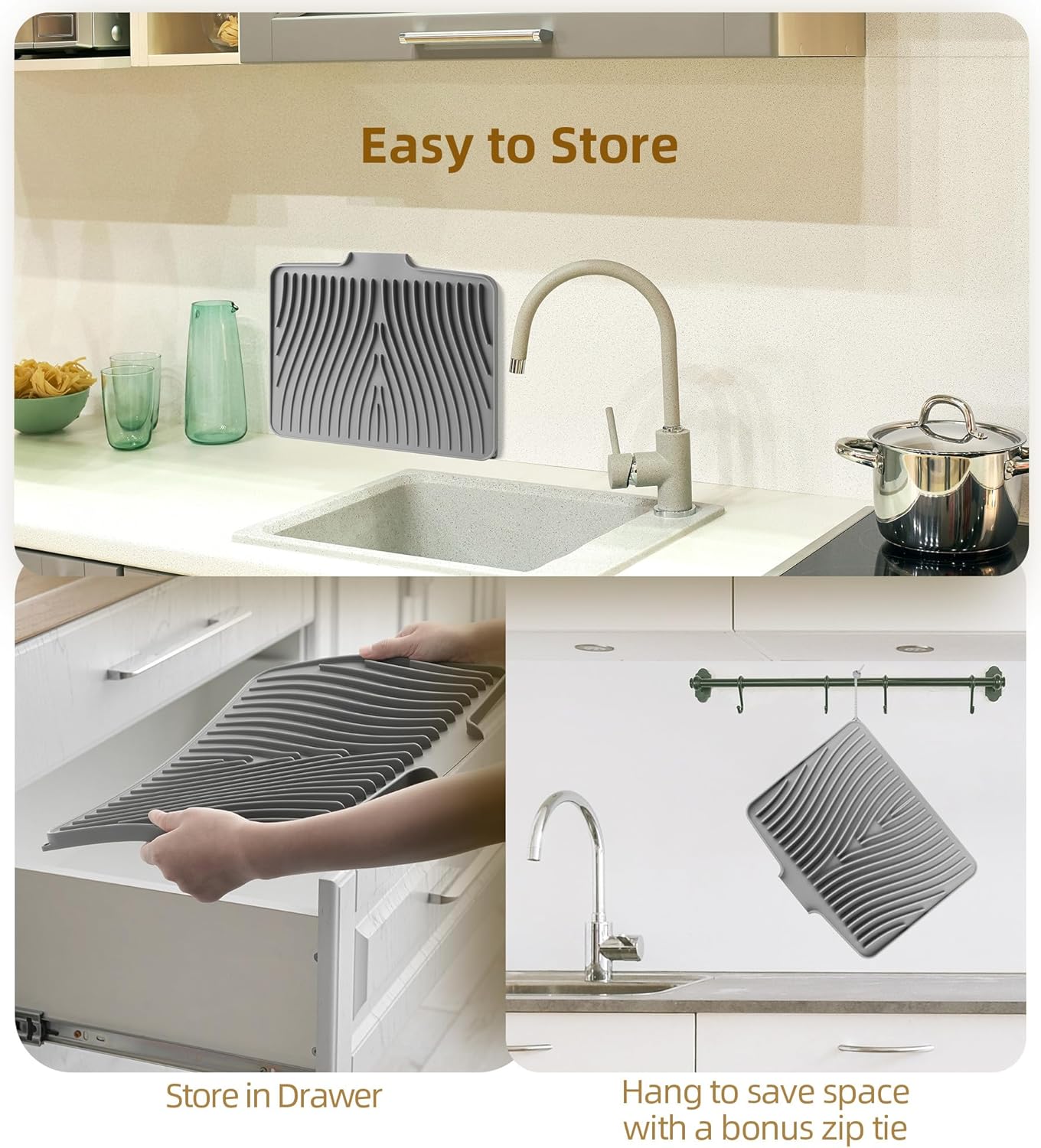 - Efficient Self-Draining Design: Slightly inclined ridges and a built-in drain lip facilitate water flow into the sink, accelerating drying. The raised edge prevents overflow