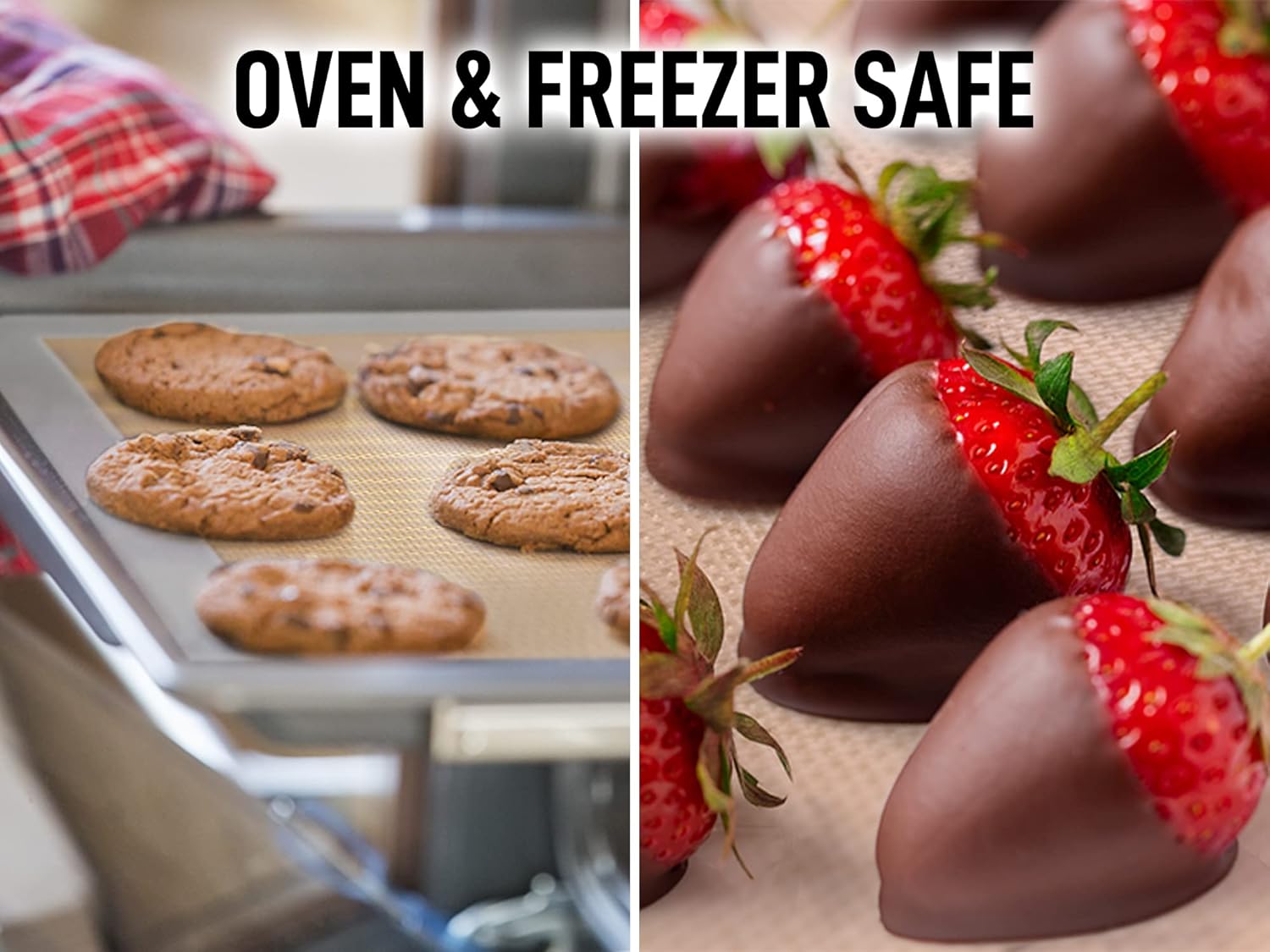 - STRONG AND STURDY: For a smooth baking experience, we have built these baking mats with food-grade silicone that is strong, flexible, and can withstand temperatures up to 480° F. The sturdy material makes these water and scratch resistant mats safe to use in ovens, microwaves, and even freezers.