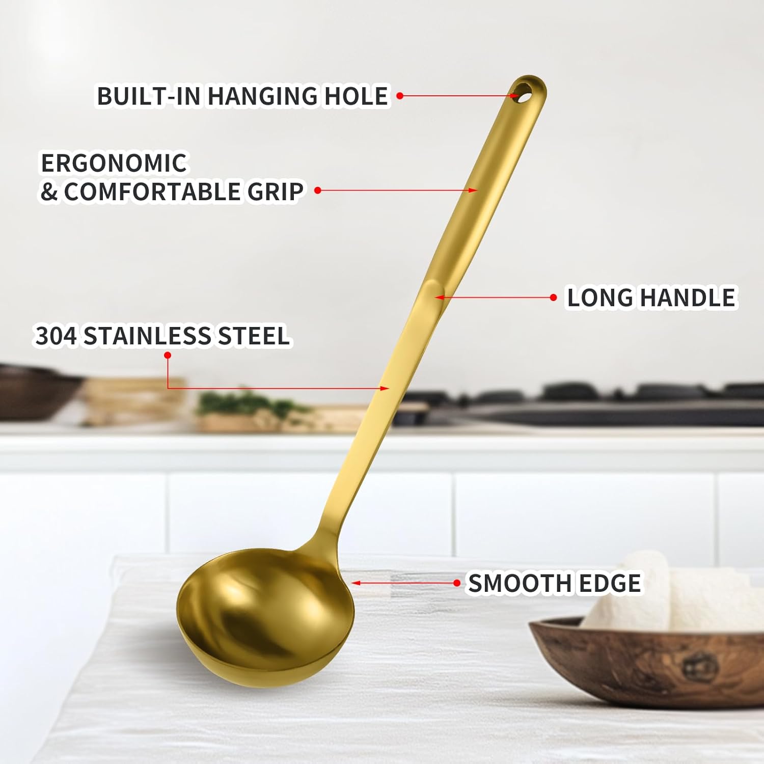 - Excellent Workmanship: Made of food-grade 304 stainless steel, our kitchen utensils have smooth edges to prevent them from scratching your non-stick frying pans or woks. With a matte finished surface, our cooking utensils set adds more elegance to your kitchen table and enhances your cooking experience.