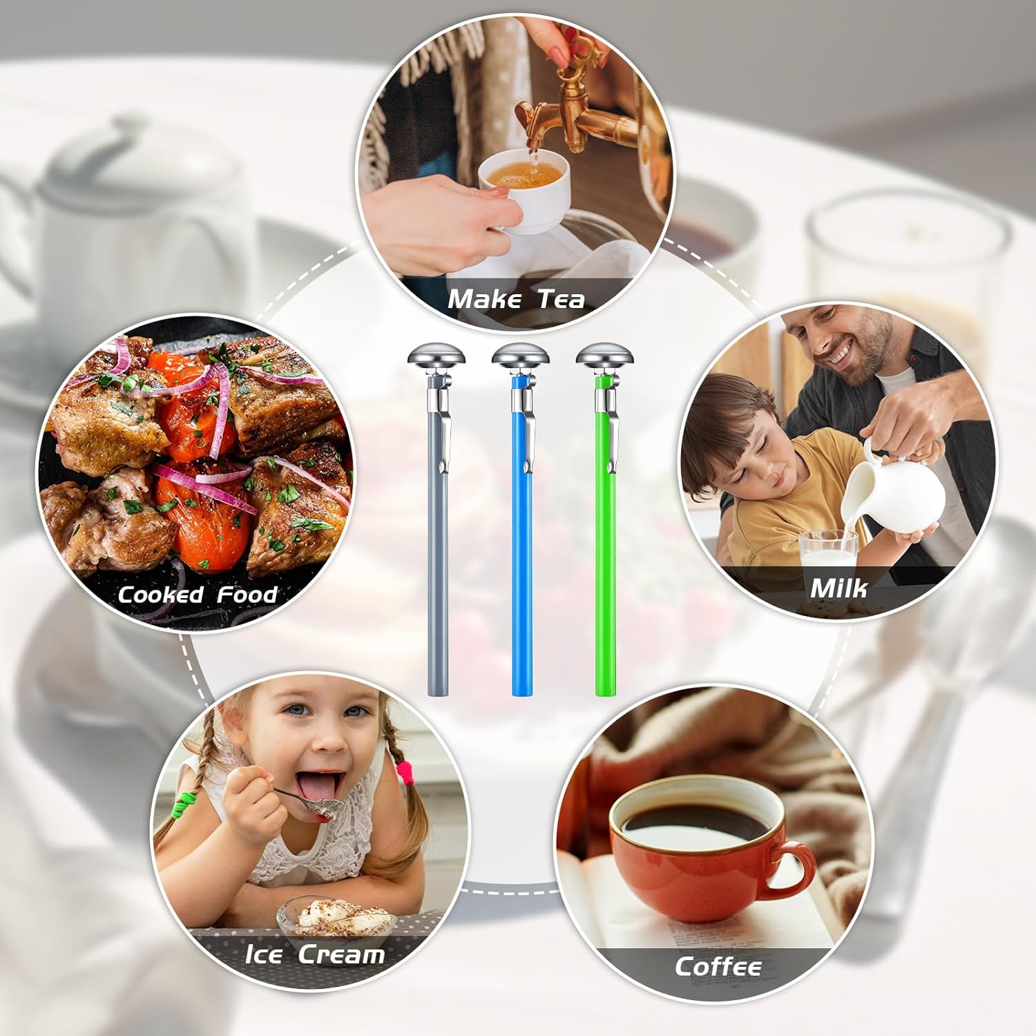 - Easy to Operate: with a fine material and a simple look, you can use our thermometer for cooking to measure the temperature of milk, coffee, beverages, red wine, tea, water, and so on, making it a useful aid in your kitchen