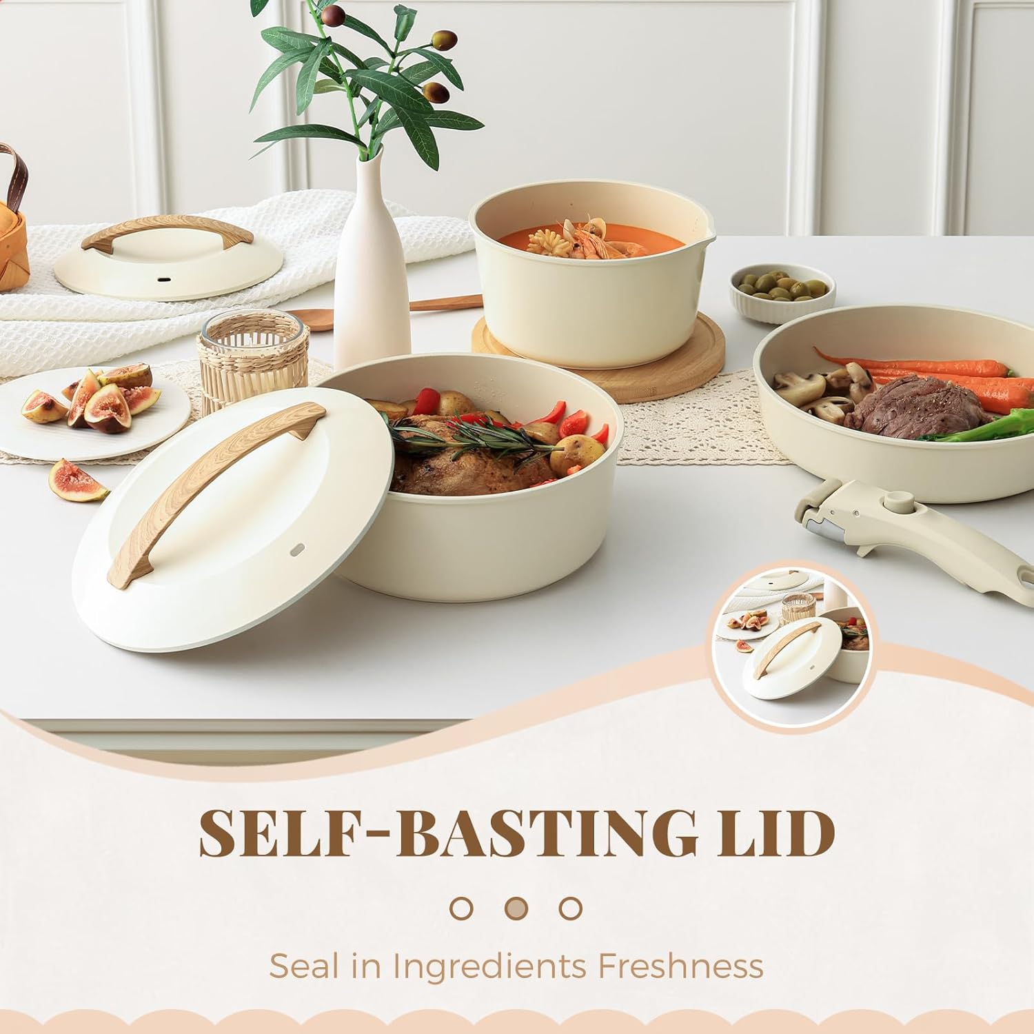 - Self-Basting Lid: Our innovative self-basting lid allows natural condensation to redistribute moisture, keeping your dishes tender and flavorful without the need for constant monitoring