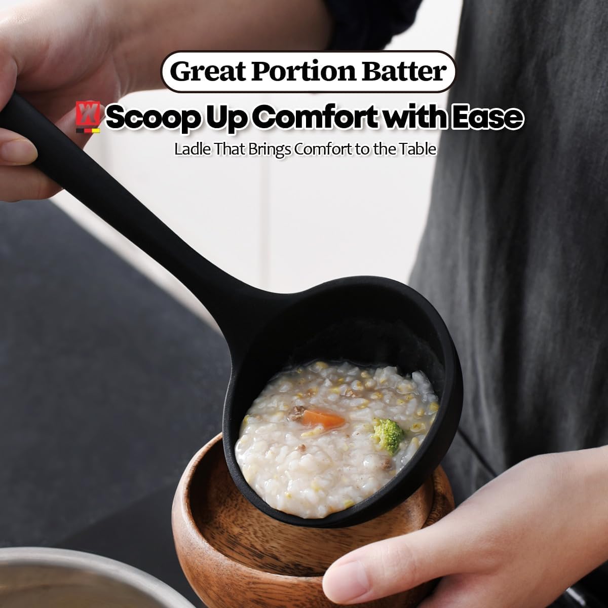 - VERSATILE KITCHEN TOOLS: The large ladle is perfect for serving soups, stews, and sauces, while the slotted spatula is ideal for flipping and lifting a variety of dishes, including eggs, burgers, crepes, and more. These versatile tools bring convenience to your cooking routine.