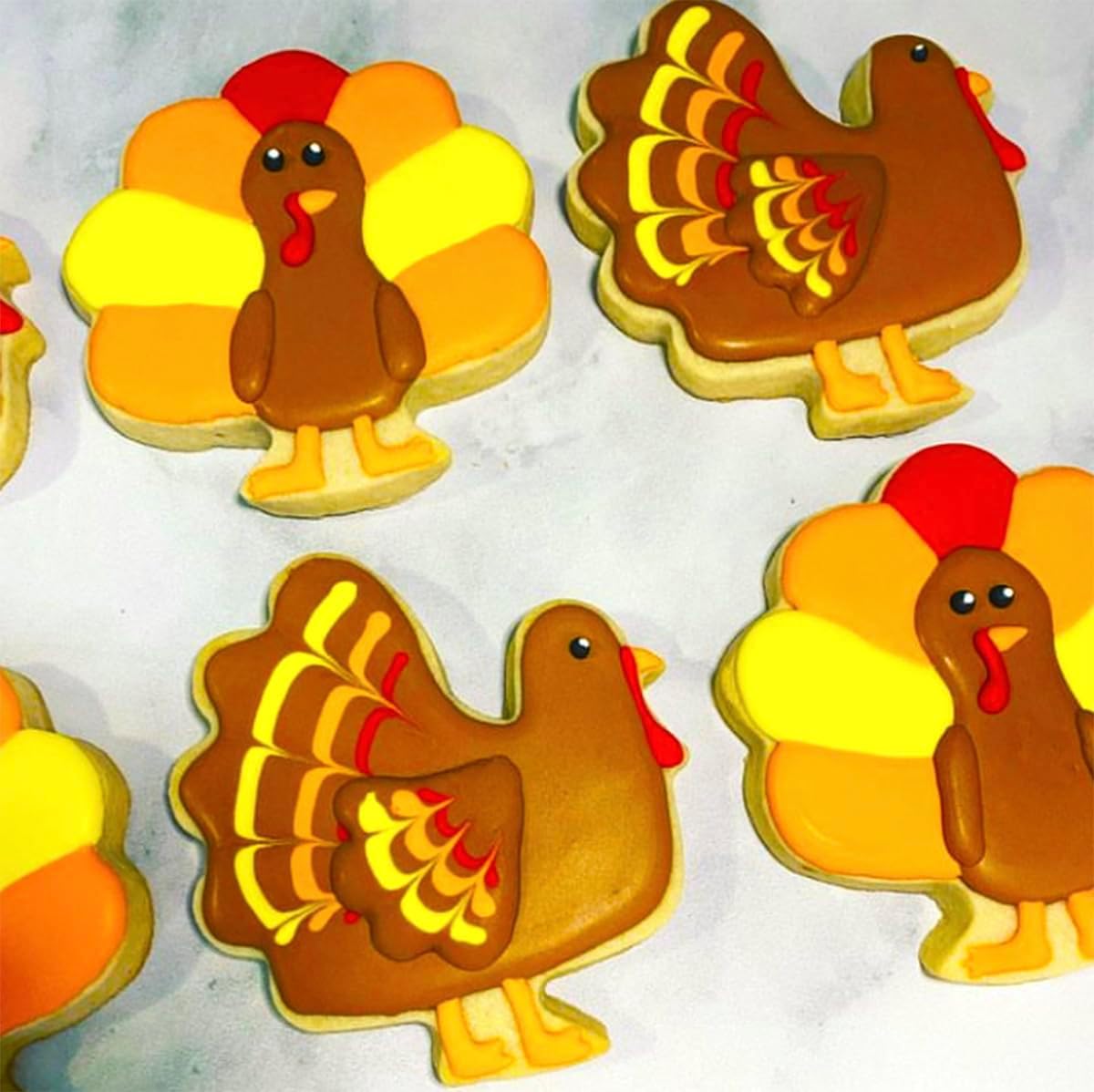 - ăCute Shapesă: Our Thanksgiving cookie cutters set contains 5 cute shapes: turkey*2 (different shapes), maple leaf, acorn, pumpkin. Regular size, you can use them to cut cookies, dough, pancakes, fondant, corn cake, pumpkin pie... Give full play to your imagination, DIY your own dessert.