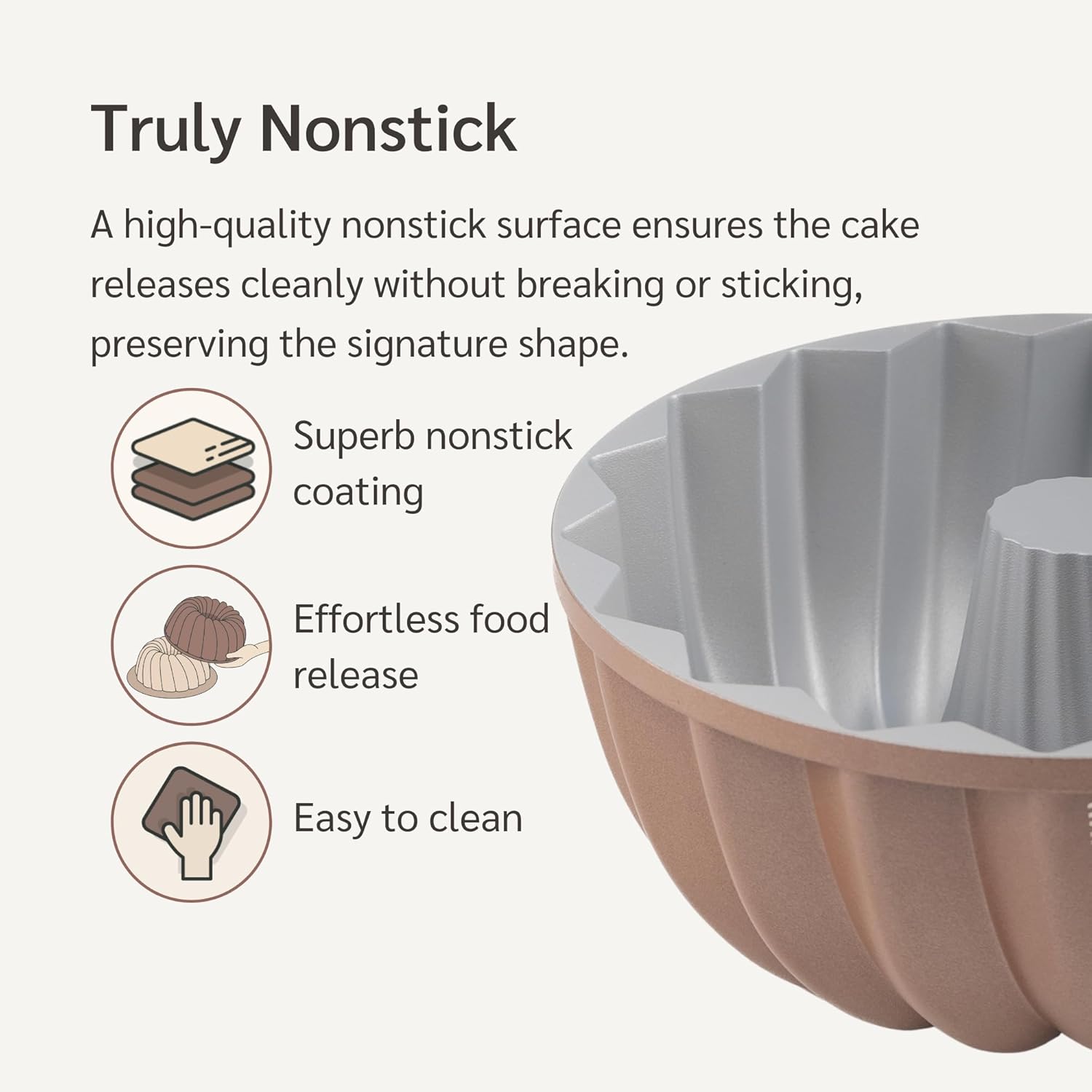 - π We know our way around the cake - these non stick fluted cake pans are best gift for bakers and wedding registry must haves! HAPPIELS elegant champagne gold nontoxic baking pans are not only lovely to look at, they are top quality and bake like a dream.
