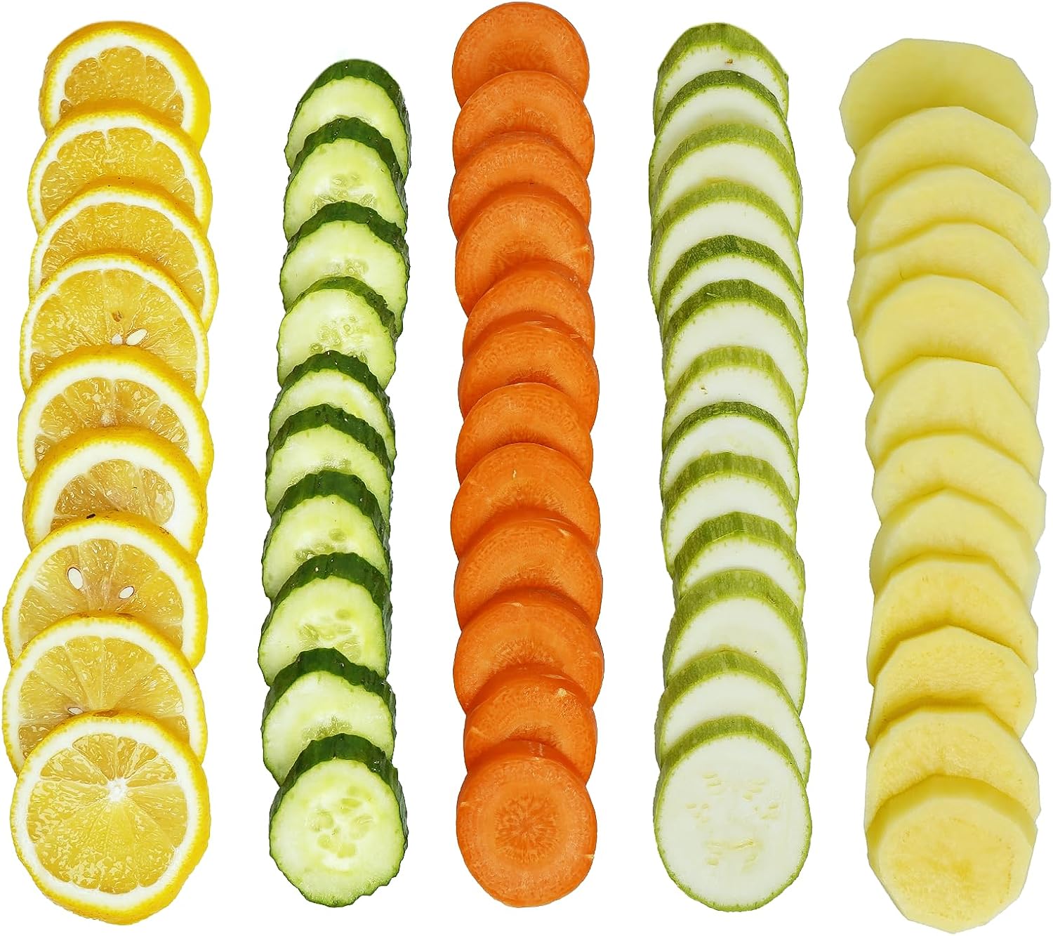 - With its adjustable design, this vegetable slicer offers multiple slicing options, from thin julienne strips to thick slices, catering to different cooking needs. The sharp stainless steel blades ensure precise and effortless cutting, saving you time and effort in the kitchen.