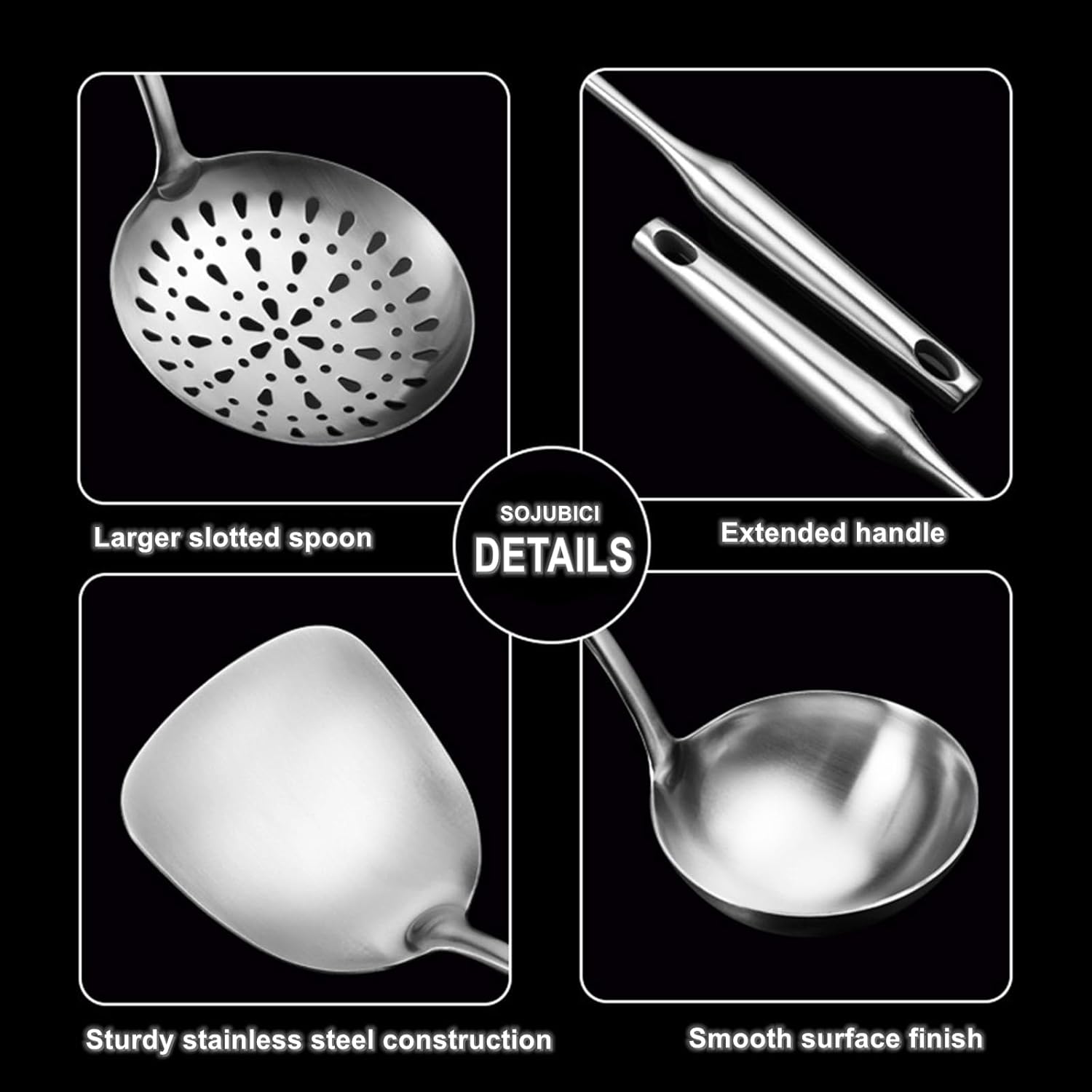 - 【Premium One-Piece Stainless Steel Construction】Crafted from high-quality 304 stainless steel, these utensils feature a seamless one-piece design, ensuring durability and resistance to rust, stains, and wear. Perfect for professional-grade kitchens or everyday home cooking.