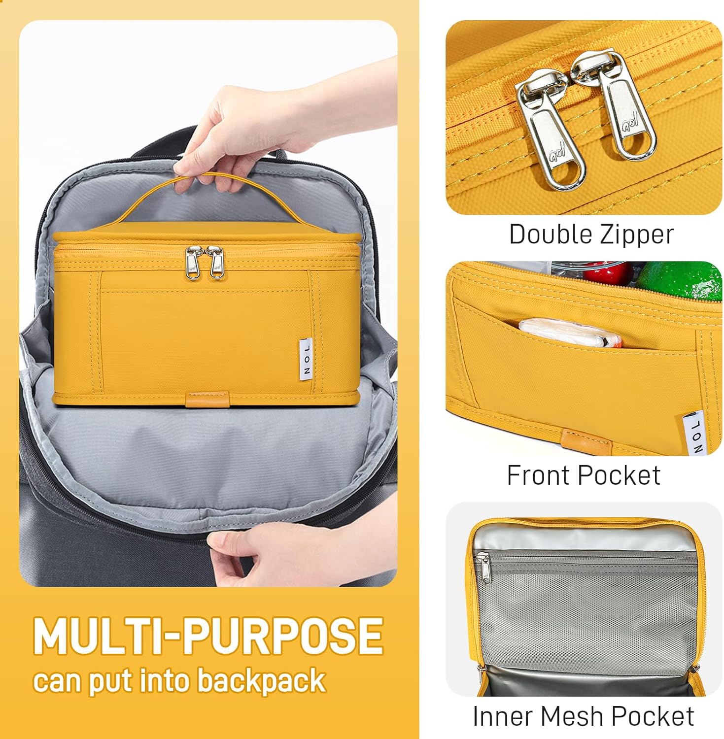 - Premium Material: NOL mini reusable lunch bag is made of the highly quailty 900D Polyester, the inner layer is PEVA material and the middle layer is specially filled with 5mm thick insulating lining, which provide great insulation to keep the food warm or fresh up to 3-4 hours.The double zippers of the thermal bag are made by NOL, very smooth and resistant.