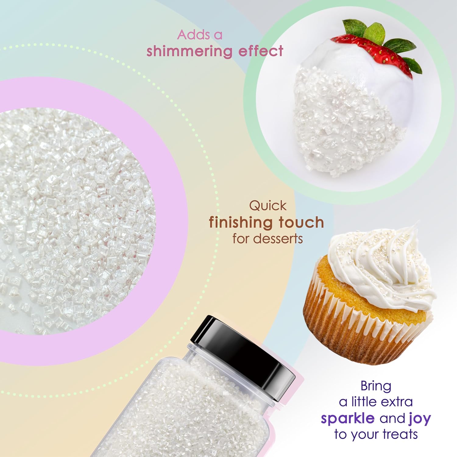 Bakerpan Pearlized Sugar Sprinkles for Baking - 5 Ounce - Sparkling White Decorating Sugar Crystals for Cookies, Cake Pops, Ice Cream (Made in USA)