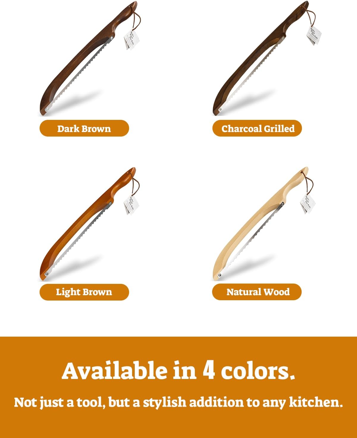 - Premium Bow Body: Crafted from Pine wood, the sourdough bread baking supplies feature a beautifully designed bow body that not only enhances aesthetic appeal but also provide exceptional durability. The natural properties of this bread cutter make it resistant to moisture and decay, ensuring a long-lasting tool for your kitchen. The ergonomic design of the bread knife for homemade bread allows for a comfortable grip, making slicing effortless