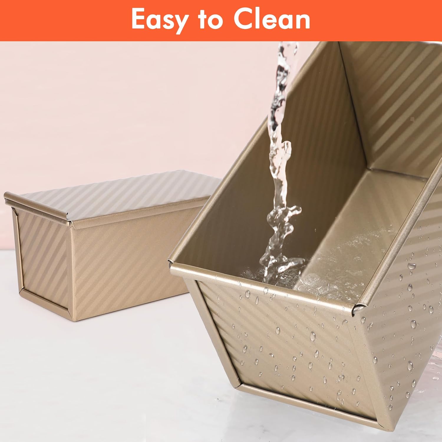 - Non-Stick Coating & Easy to Clean --- The pretty slick nonstick coating on loaf pan which is easy to clean, making the bread dough and baked bread can be removed from it easily. We suggest that spray the pan with some cooking spray before putting dough in it to get the nonstick coating working well. Moreover, be careful with the sharp inner curls and outer corners of the pans while using or cleaning them.