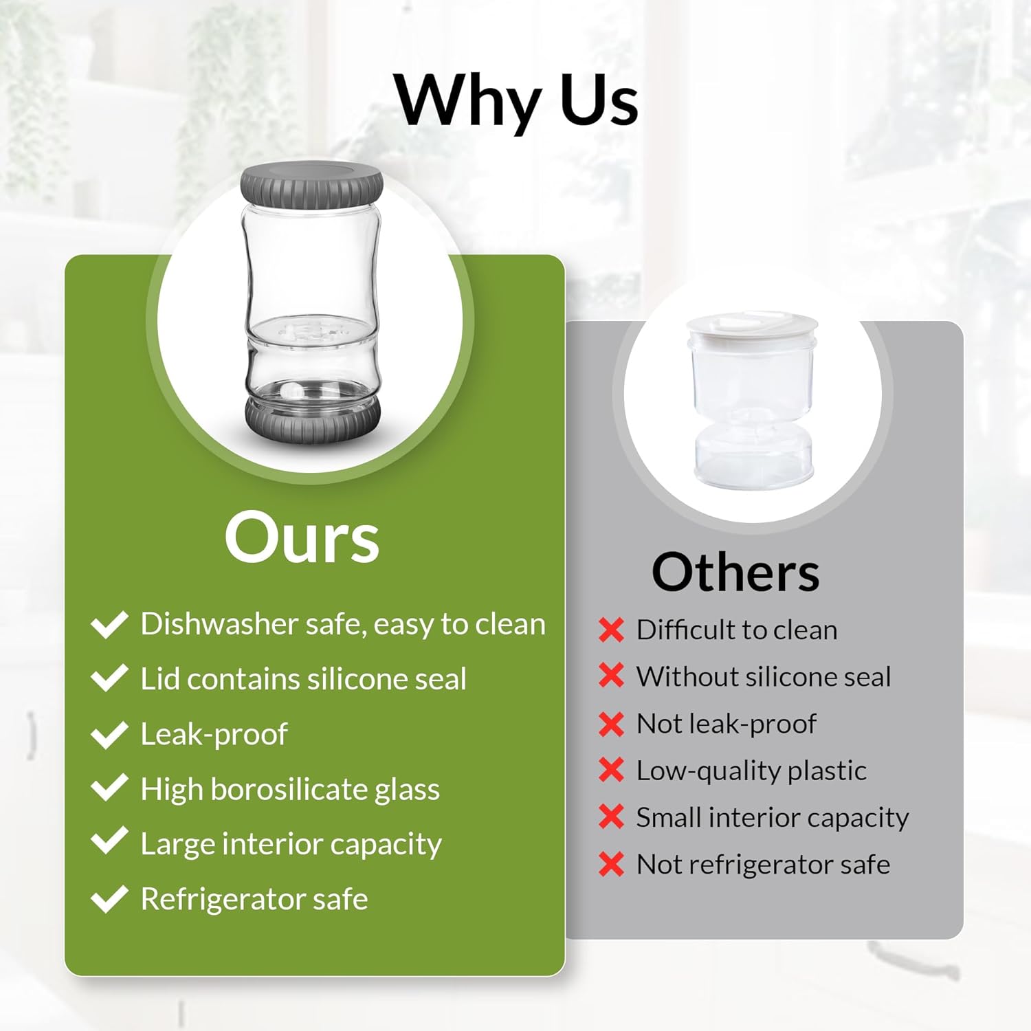 - 【UPGRADE LEAK-PROOF AND NON-SLIP】: Our Glass Pickle Storage Container is equipped with a food grade better sealing ring,the silicone airtight lids grip the container tightly to ensure a quality air-tight seal and leakproof,keep pickles fresh and flavorful for longer periods of time.