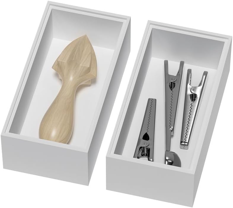 Bamboo Drawer Organizer, Small Silverware Organizer for Kitchen Drawer, Stackable Utensil Organizer, 2 Pcs Flatware Organizer Wooden Storage Box Tray (White, 6 X 3 X 2 Inch)