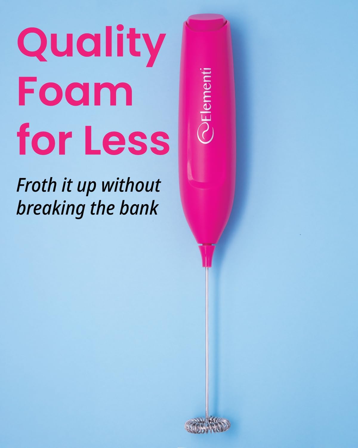 Elementi Pink Milk Frother Wand & Matcha Mixer, Mini Electric Whisk - Coffee Mixer Wand - Coffee Stirrers Electric Matcha Whisk (Hot Pink)