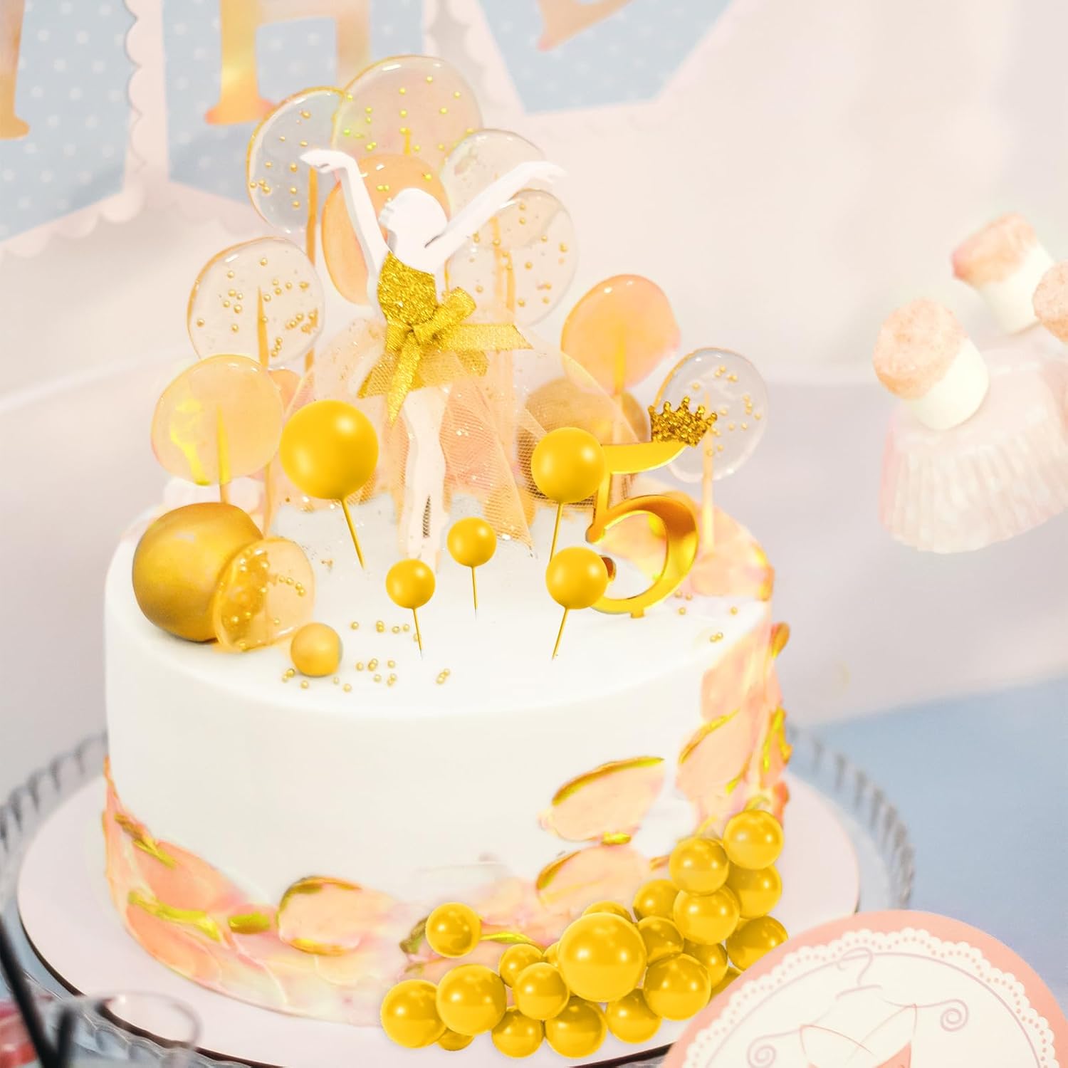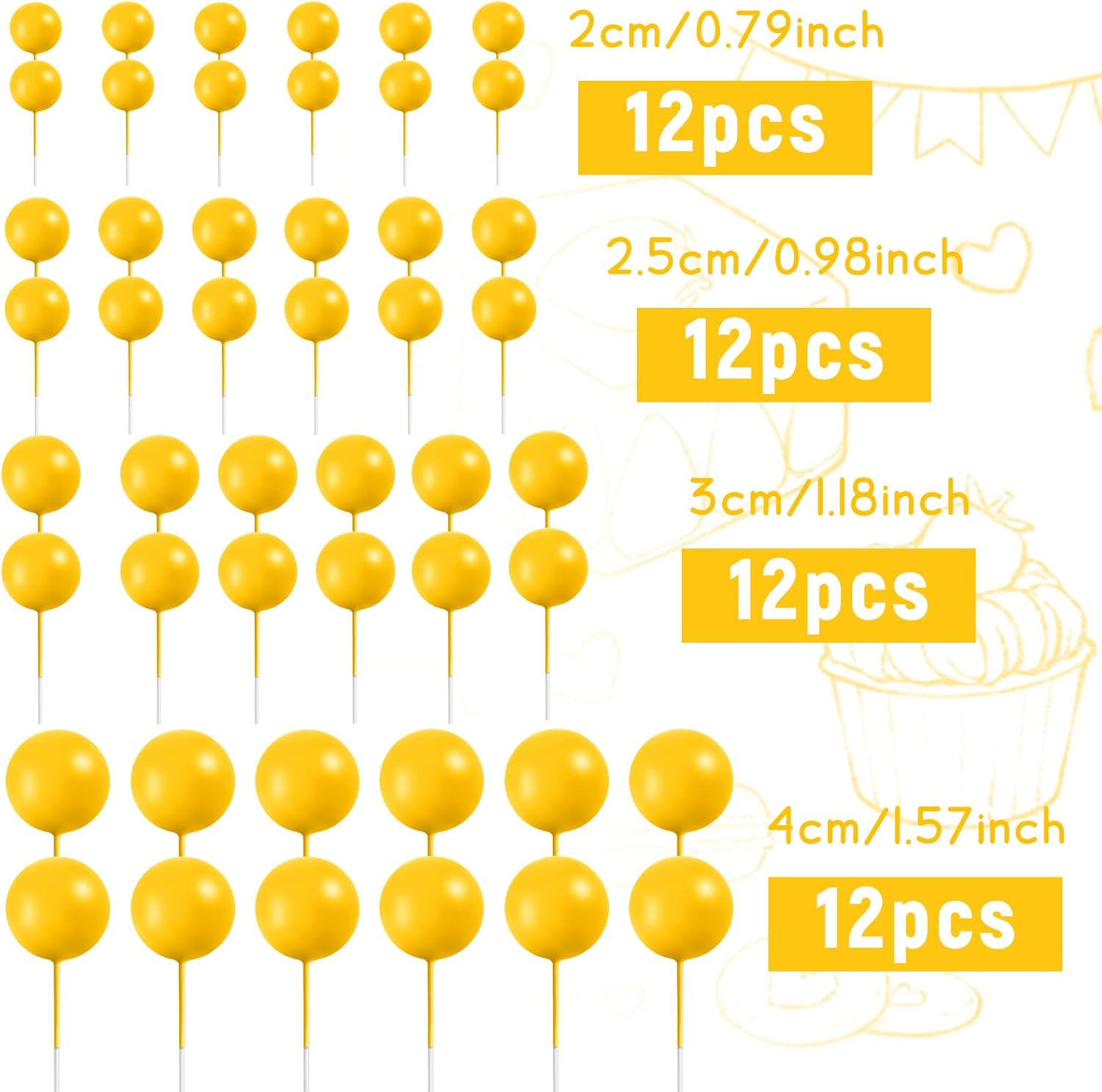 48 Pcs Yellow Cake Topper Decorations - Balloon Cupcake Toppers Foam Cake Balls for Birthday Party, Wedding Anniversary Cake Decorating