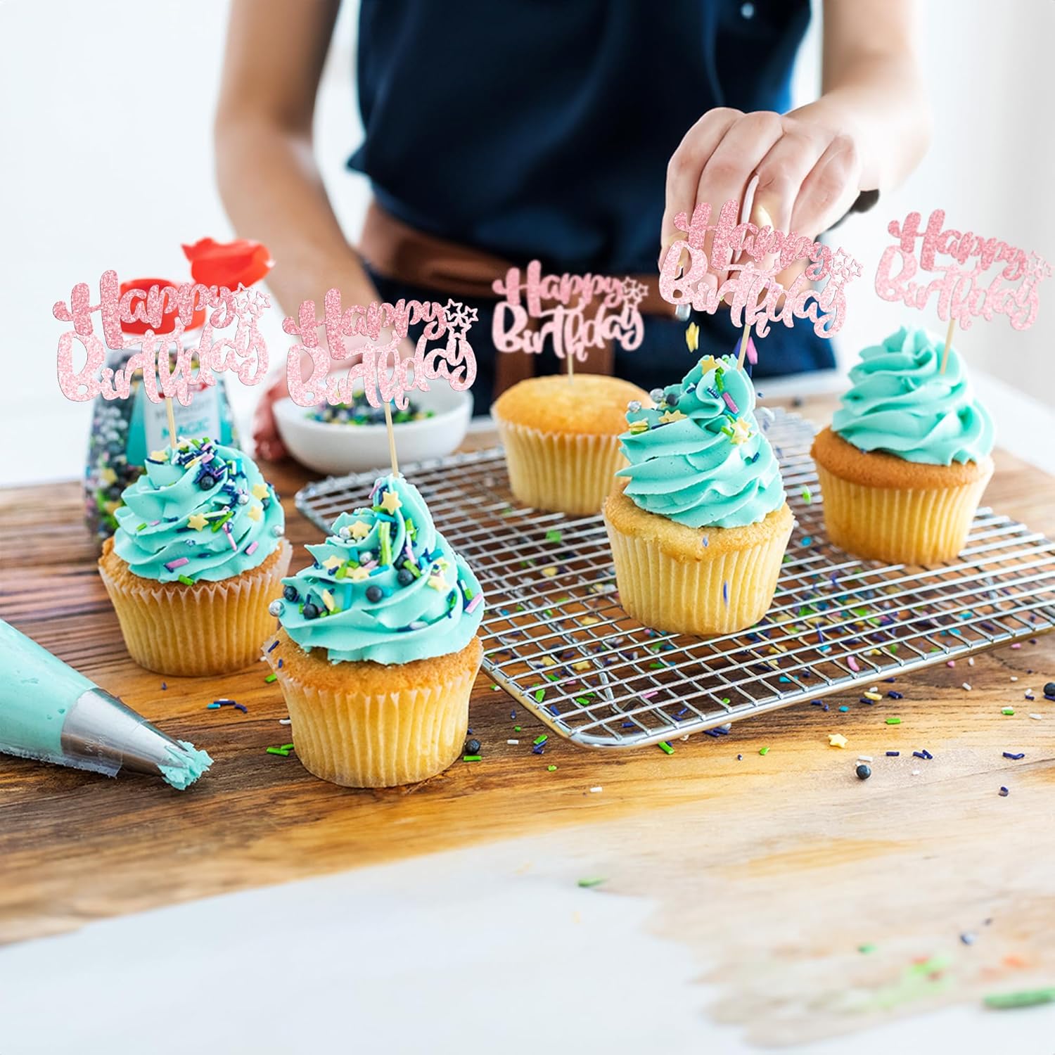 - 【NO Required】: 24Pcs Happy Birthday cupcake toppers can put in the cake directly! These 24Pcs Happy Birthday Cupcake toppers save your time and super easy to use. You can easily dress up your birthday theme cakes, yes! but don't stop there, put them into desserts, cookies, fruit pieces, appetizers, muffins and so much more!