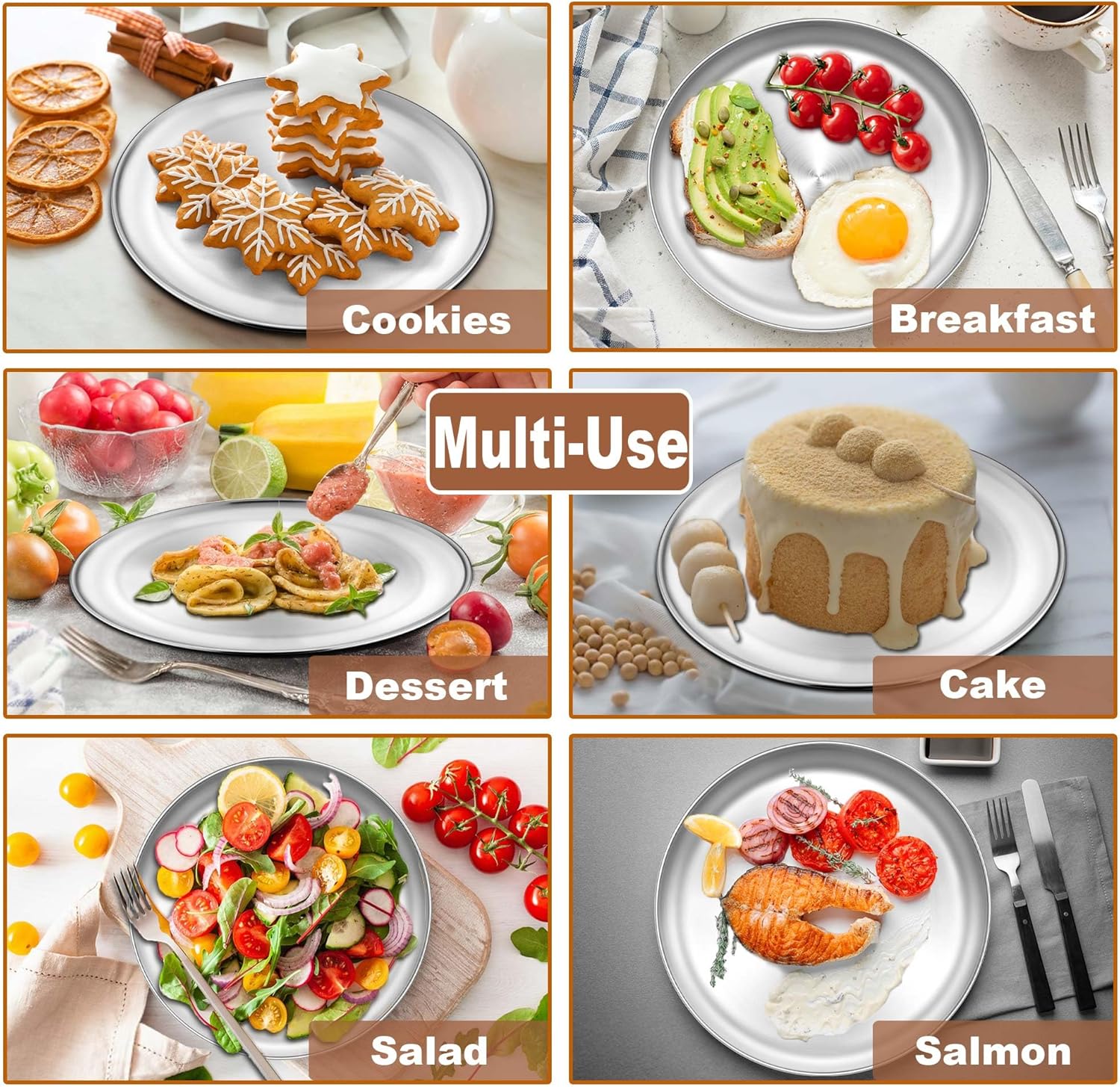 - 6 Pcs & Versatile: Sized 9ββ Dia x 0.7ββ H, Set of 6 are suitable to make different flavors of pizza at once, Compact size for baking small pizza cookies and pies, As serving pan for fruits, snacks, dessert, Also great as metal dinner plates for kitchens, restaurants, picnics, outdoor activities, Meeting your needs for various occasions