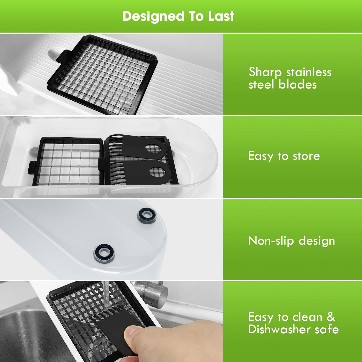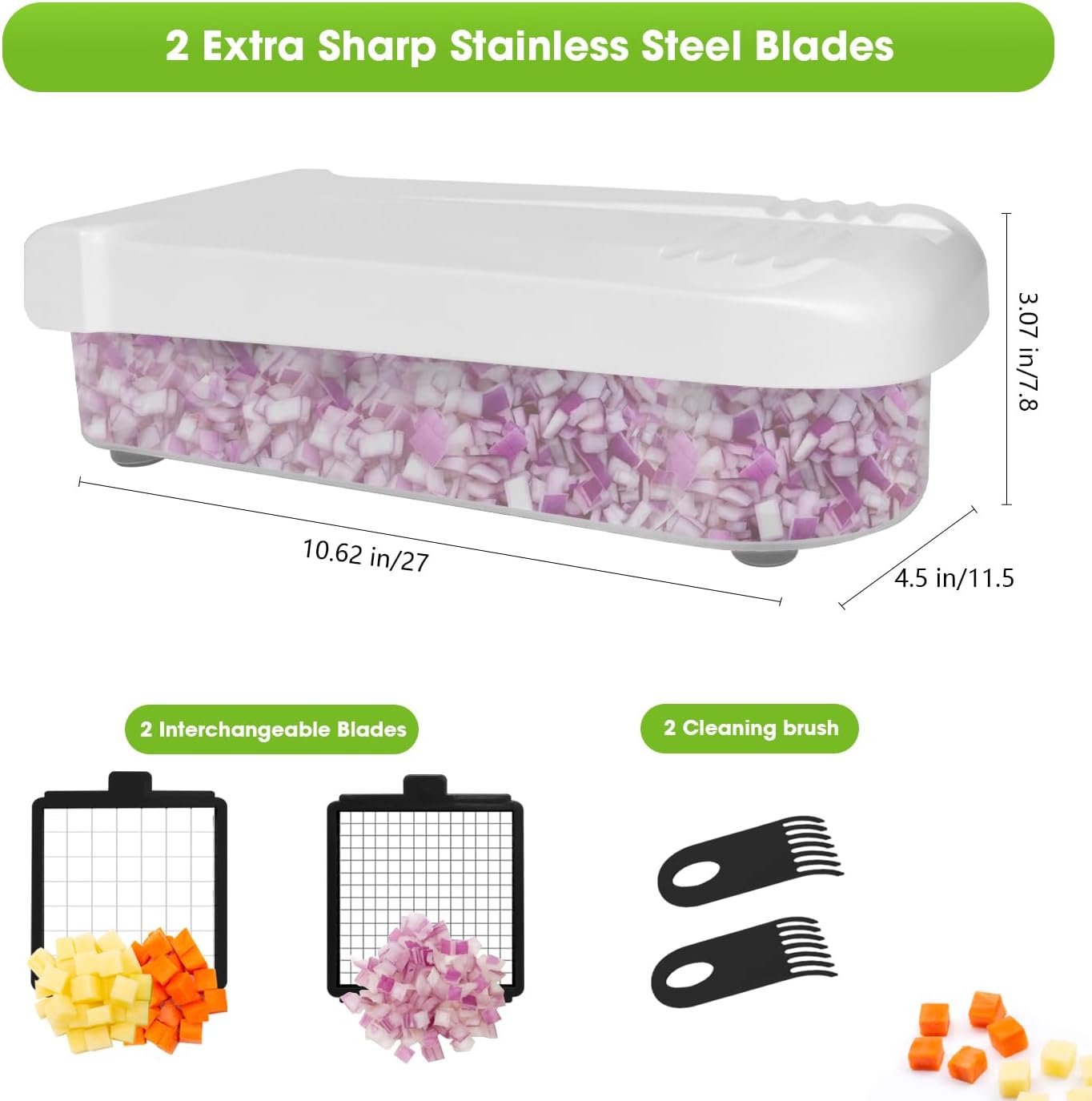 - Easy pre-meal preparation - Our vegetable cutter is a must-have tool in the kitchen. Everyone wants to eat healthier, but doesn't have much free time. Our cutters cut potatoes, tomatoes, cucumbers, carrots, etc., into small pieces with a strong, rust-proof blade. The stainless steel blade keeps the razor sharp, making the dicing crisper and smoother.