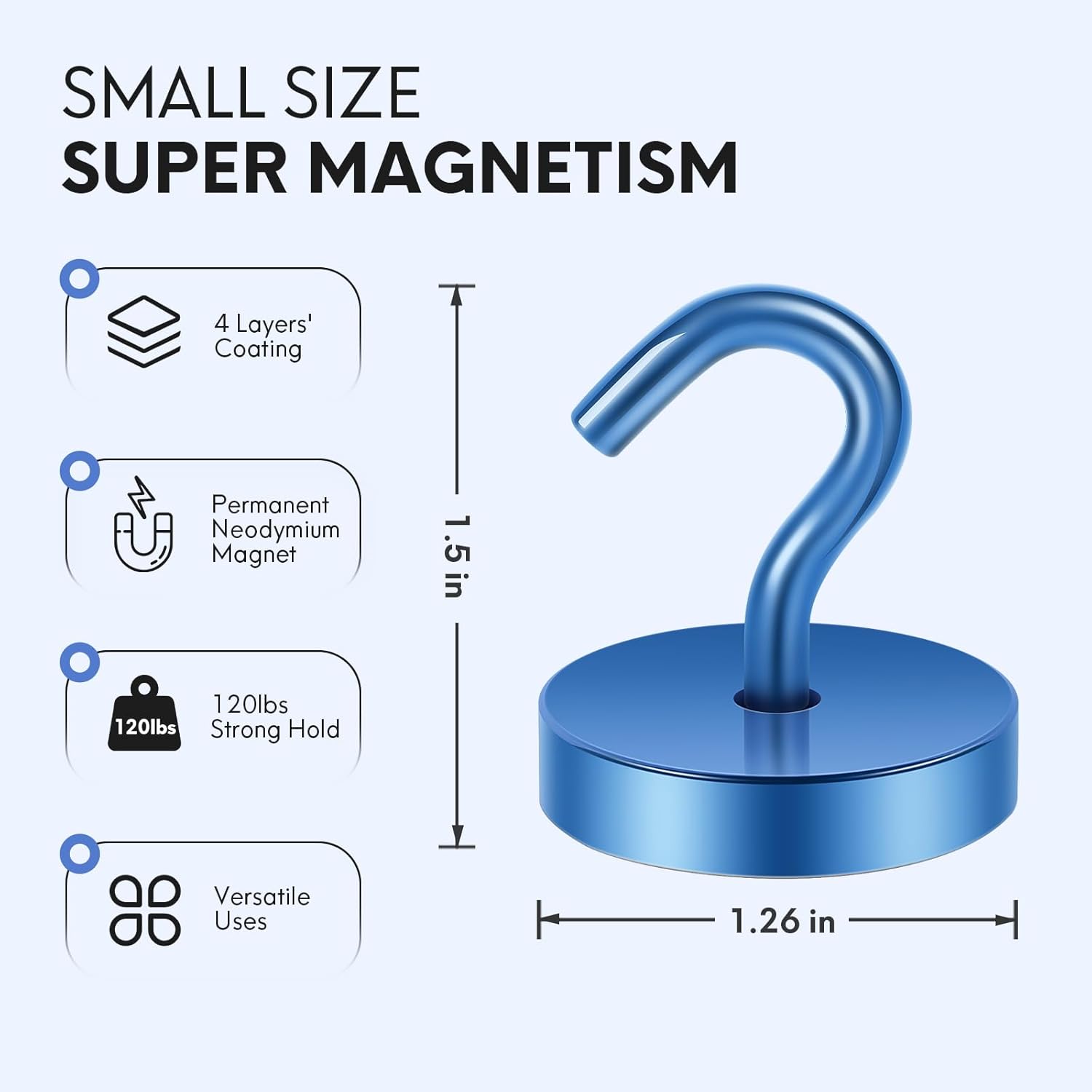 - ✔ VERSATILE USE- Neosmuk’s strong neodymium magnetic hooks were endowed with a strong capability for holding various items wherever there is iron or steel. This magnet hook is a perfect magnetic key holder. You can also hang your tools next to the toolbox with this magnetic hook. Our magnetic hooks are great for grill, pot, cup, utensils, and oven.