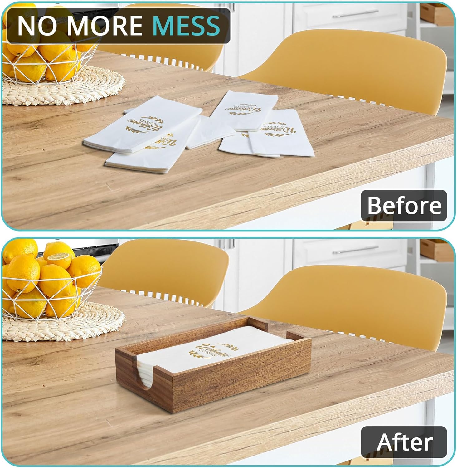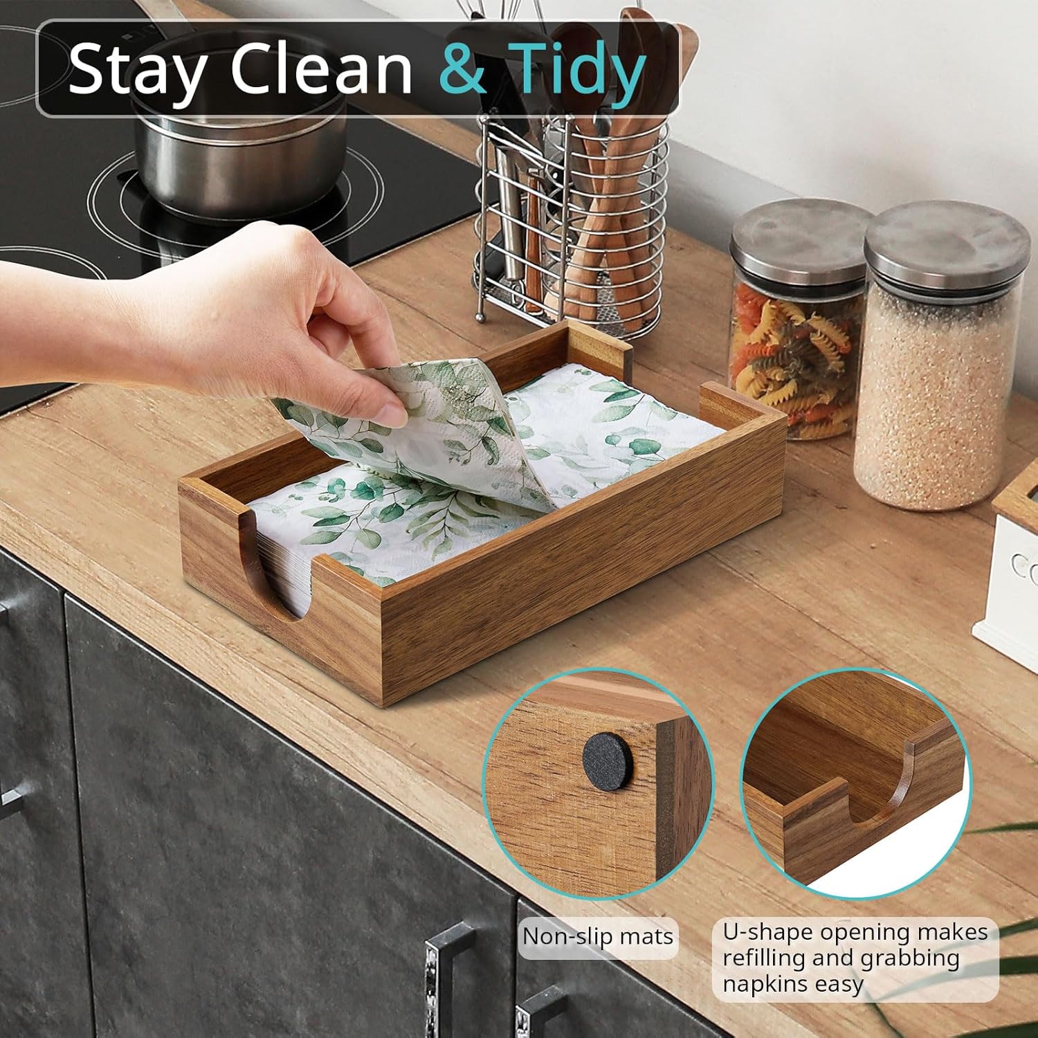 Napkin Holder for Bathroom, Acacia Wooden Guest Towel Holder Tray for Bathroom, Disposable Paper Hand Towel Holder for Bathroom Accessories, Dinner Napkin Holder for Kitchen Table Party