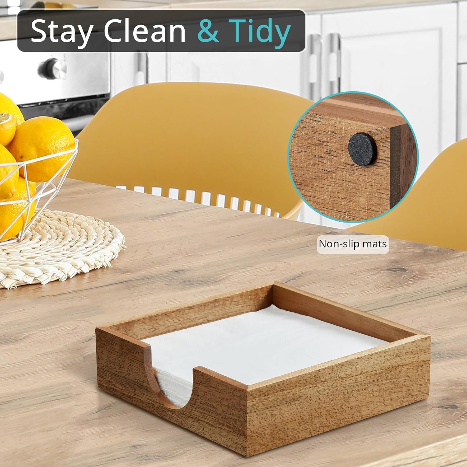 Acacia Wood Napkin Holder for Table, Napkins Holders For Paper Napkins, Flat Napkin Holder for Luncheon, Napkin Holders for Kitchen Dinner Table Decor, Napkin Dispenser for Indoor & Outdoor Use