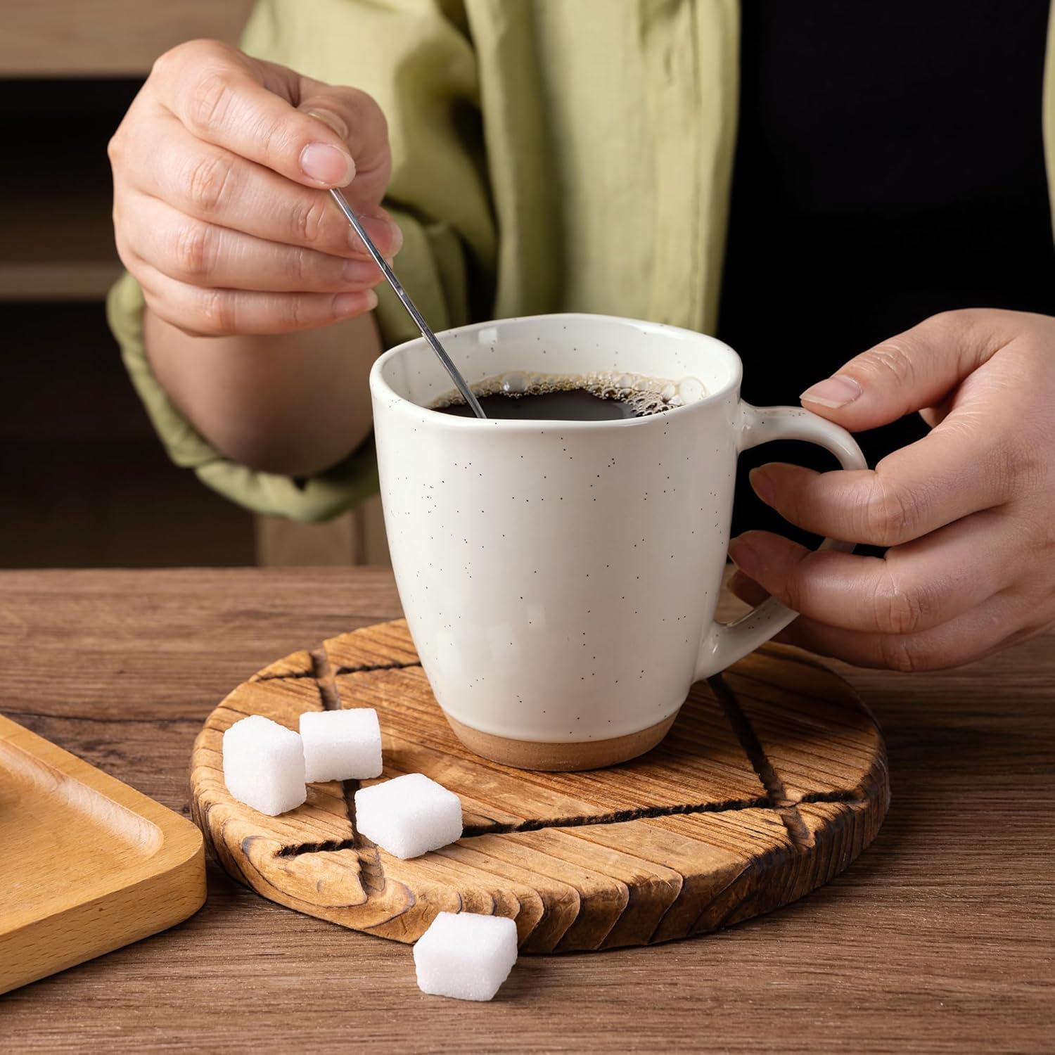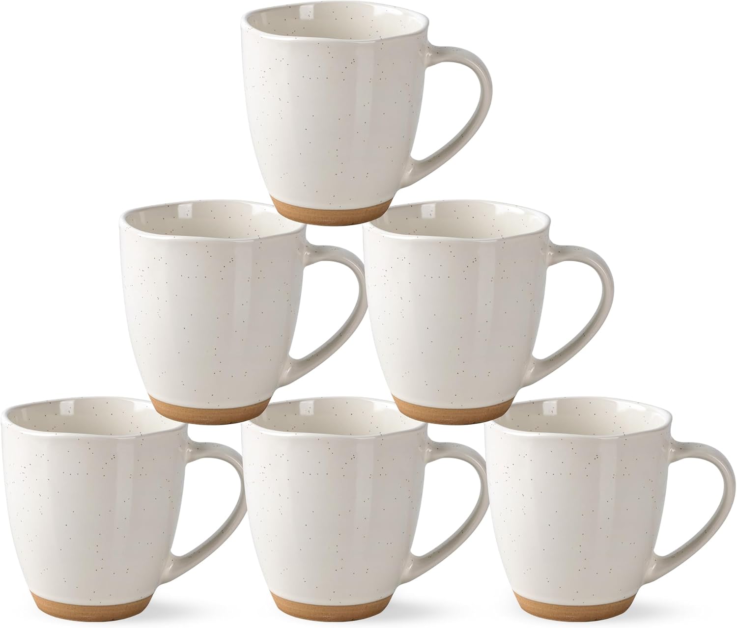 AmorArc 12oz Ceramic Coffee Mugs set of 6, Stylish Coffee Mugs with Rustic Terracotta Underside for Latte/Cappuccino/Milk/Cocoa, Dishwasher&Microwave Safe, Light Beige
