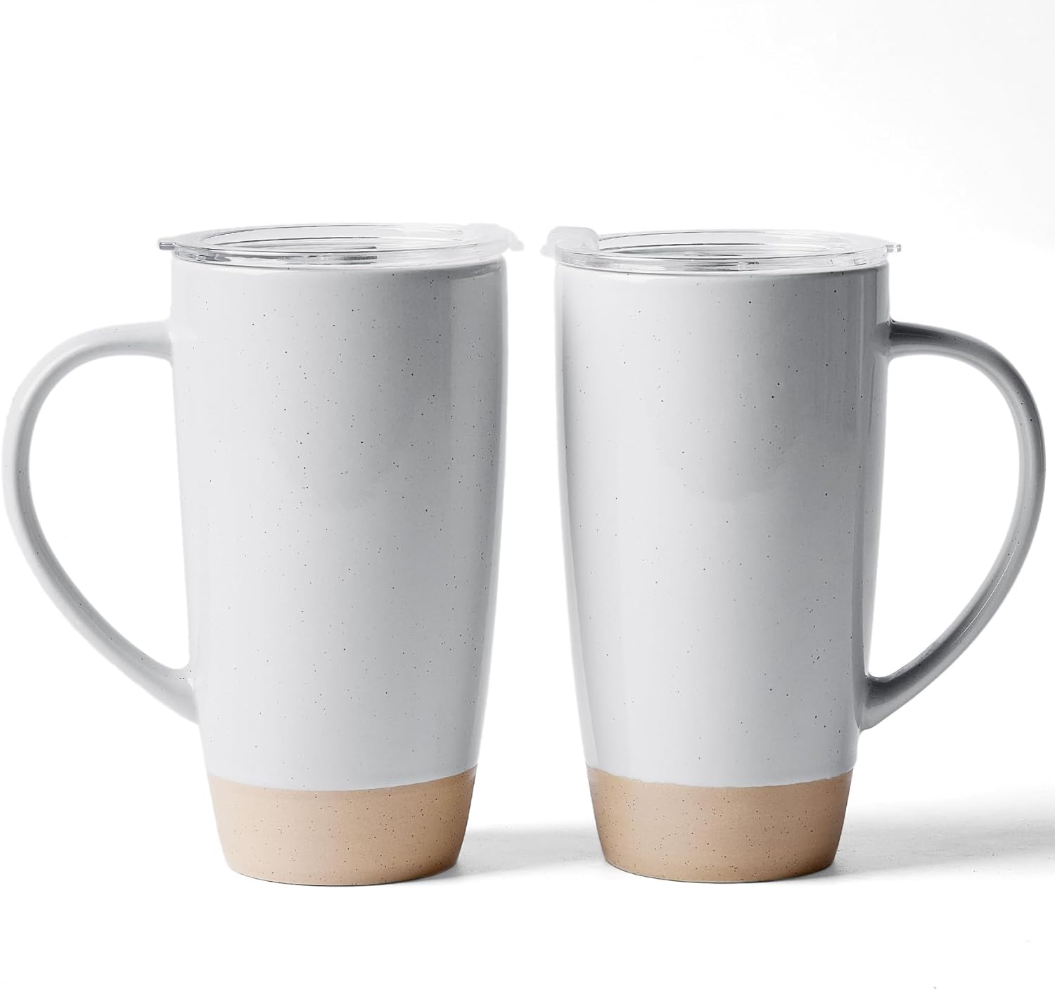 famiware Milkyway Coffee Mugs, 20oz Large Coffee Mug, Ceramic Mug Set of 2 with Lid, Cup Set with Handle for Latte, Tea, Cocoa, Milk, Home & Office, Light Gray