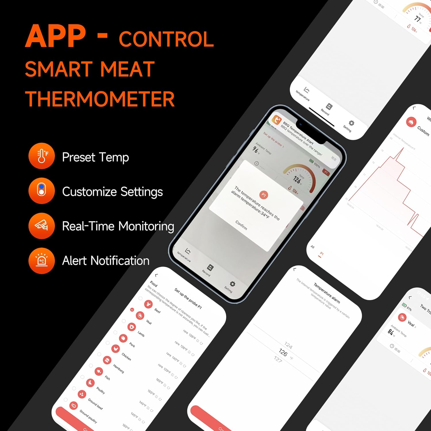 - 【Perfect Christmas Gifts for Parents and Friends 】Every wireless meat probe uses a well-built package. Giving this meat thermometer means offering the gift of ease and elegance to everyday life, this is the perfect way to show your meticulous and thoughtful care