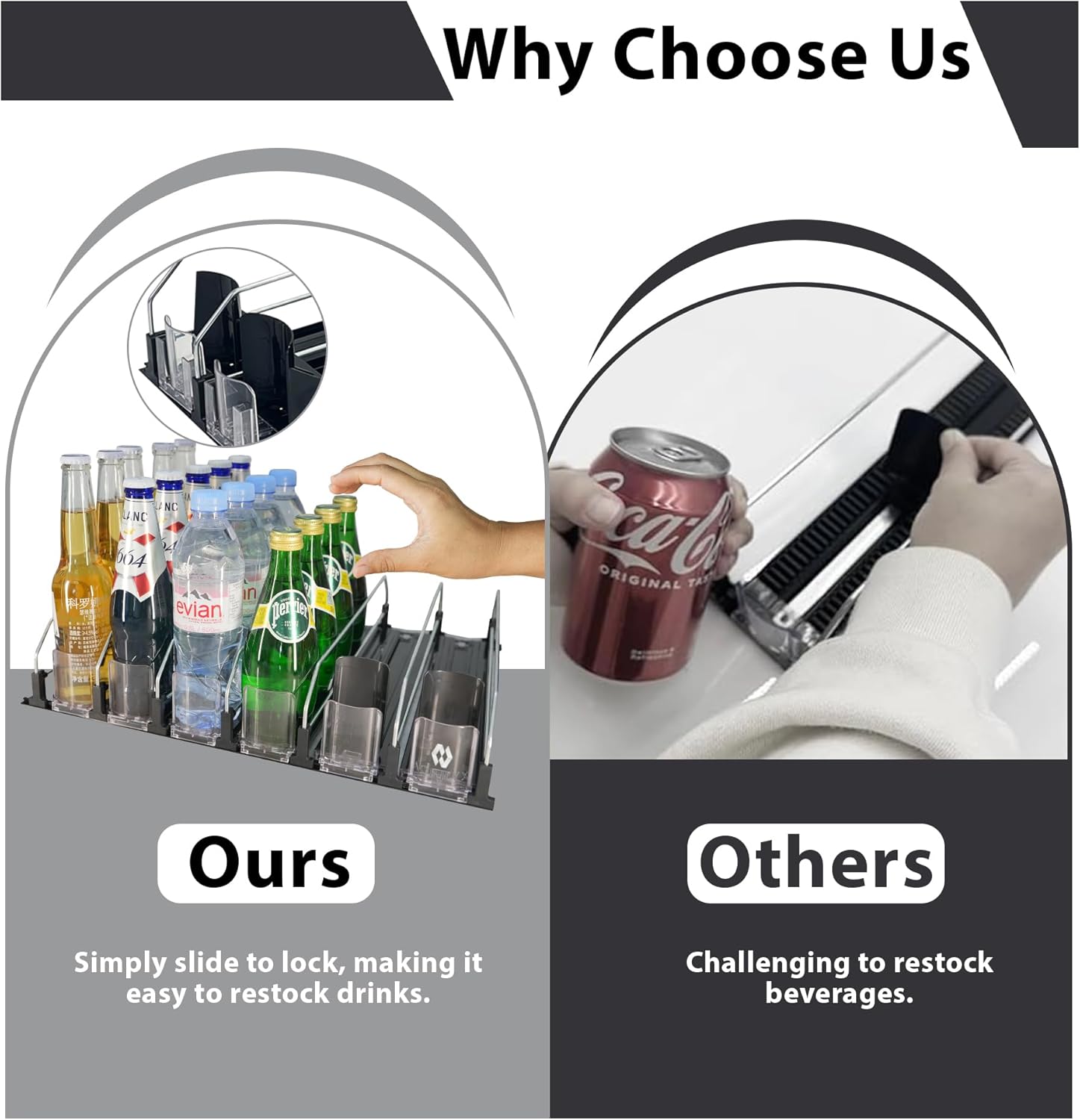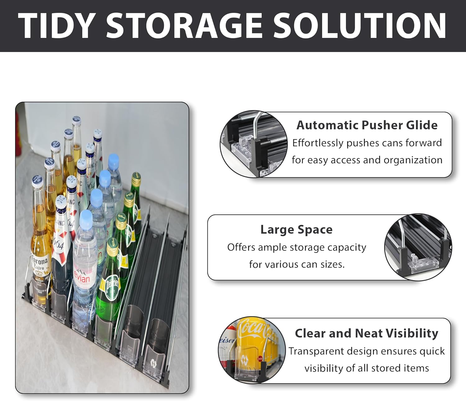 - Effortless Organization: Keep your space neat and tidy with the ACRILYX automatic can dispenser for fridge. The smart spring-loaded design gently moves drinks forward, making it easy to grab what you need while saving space and staying organized.
