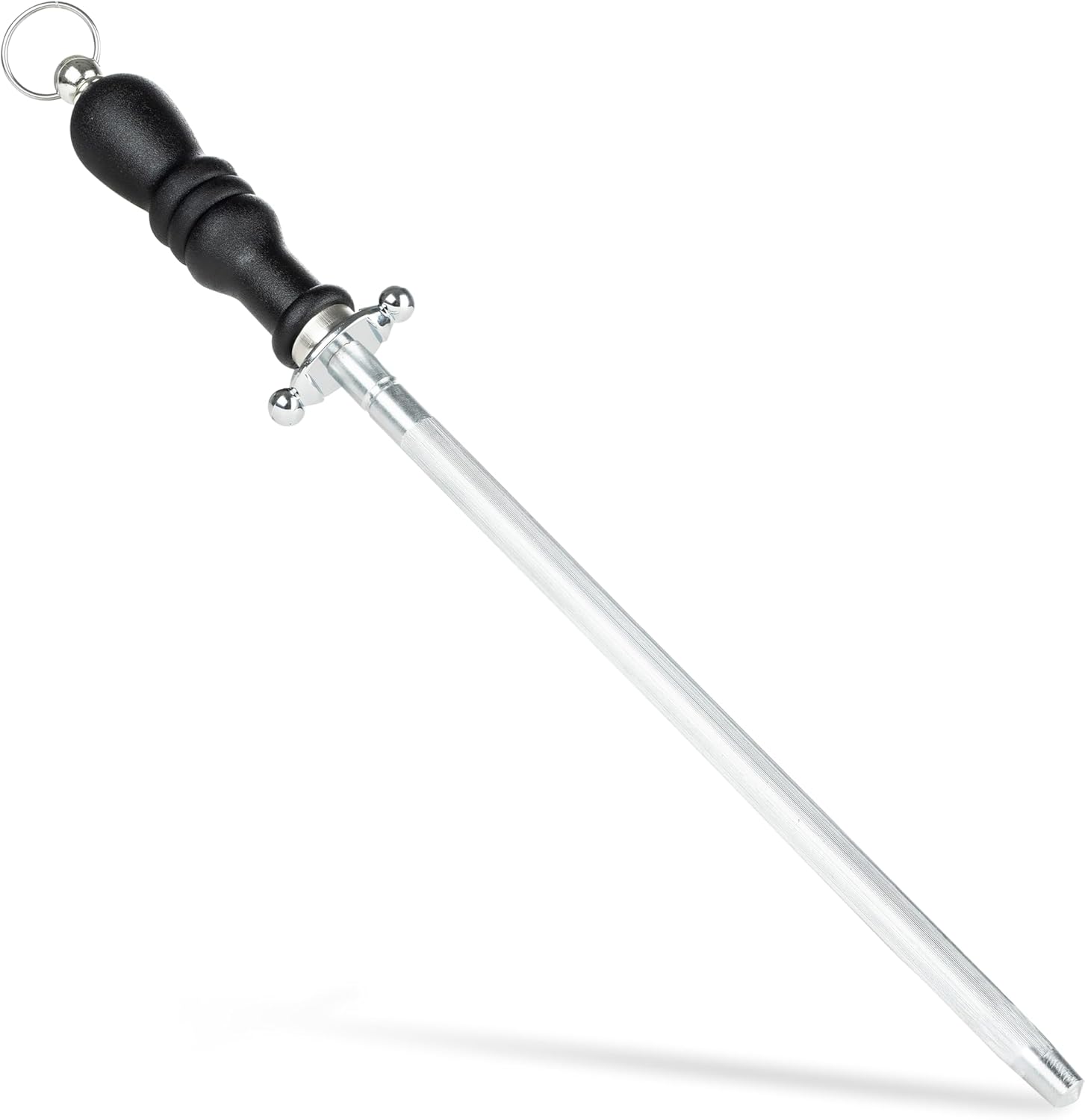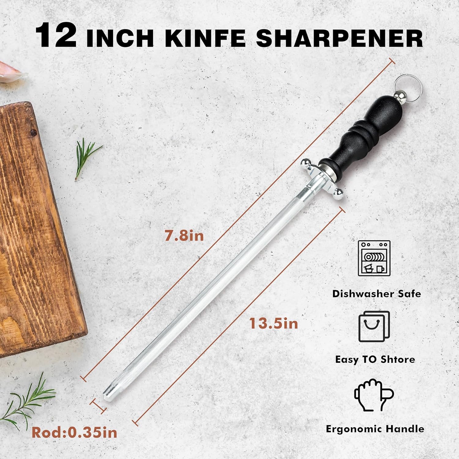 Knife Sharpener Rod, Kitchen Knives Sharpener Carbon Steel Professional Knife Sharpening Steel, Honing Rod with Hanging Holes (13 inches)