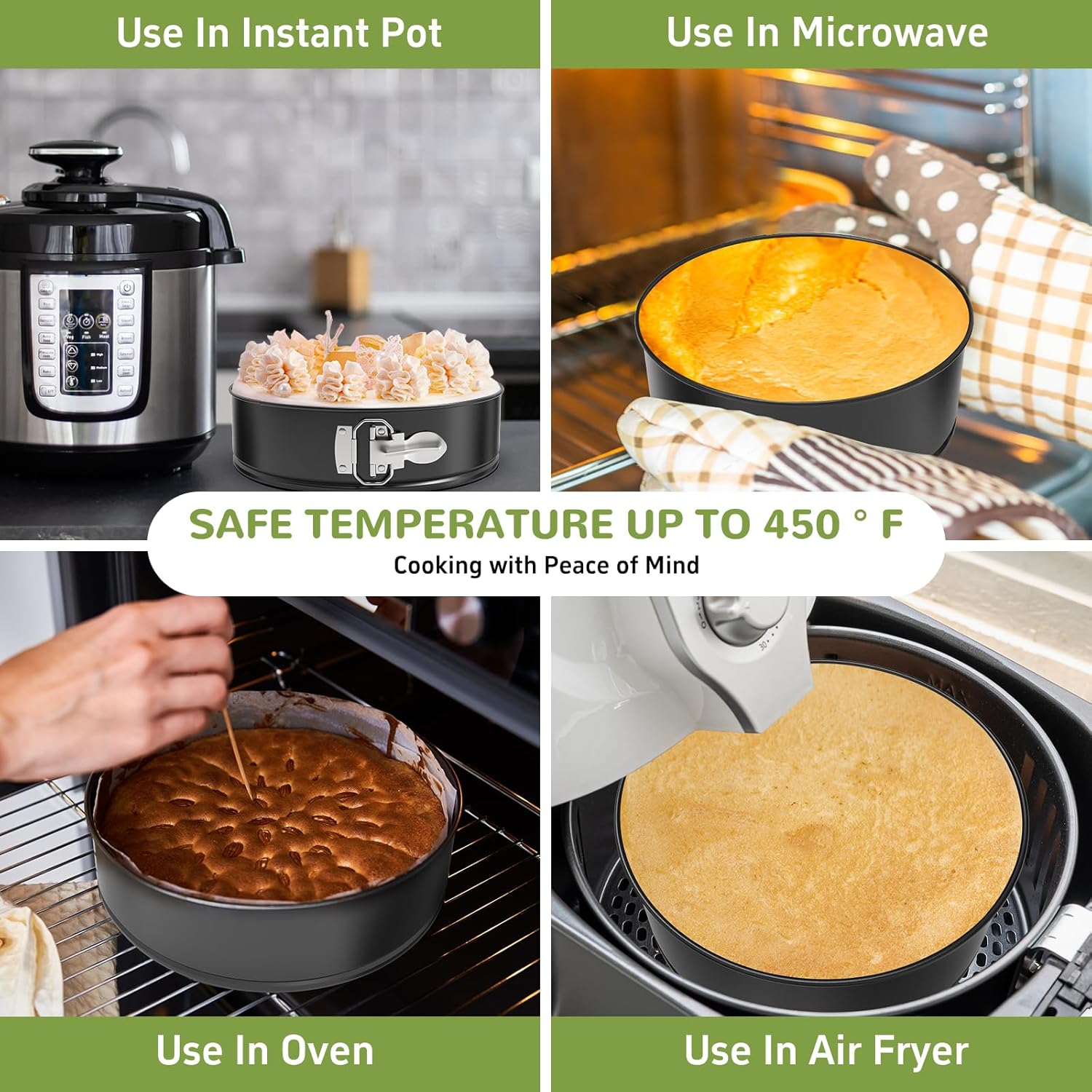 - Removable Bottom: The circular springform cake pan features a spring latch design that allows for easy and smooth release. The removable honeycomb texture base ensures even heating while helping you easily take out the cake after baking is complete