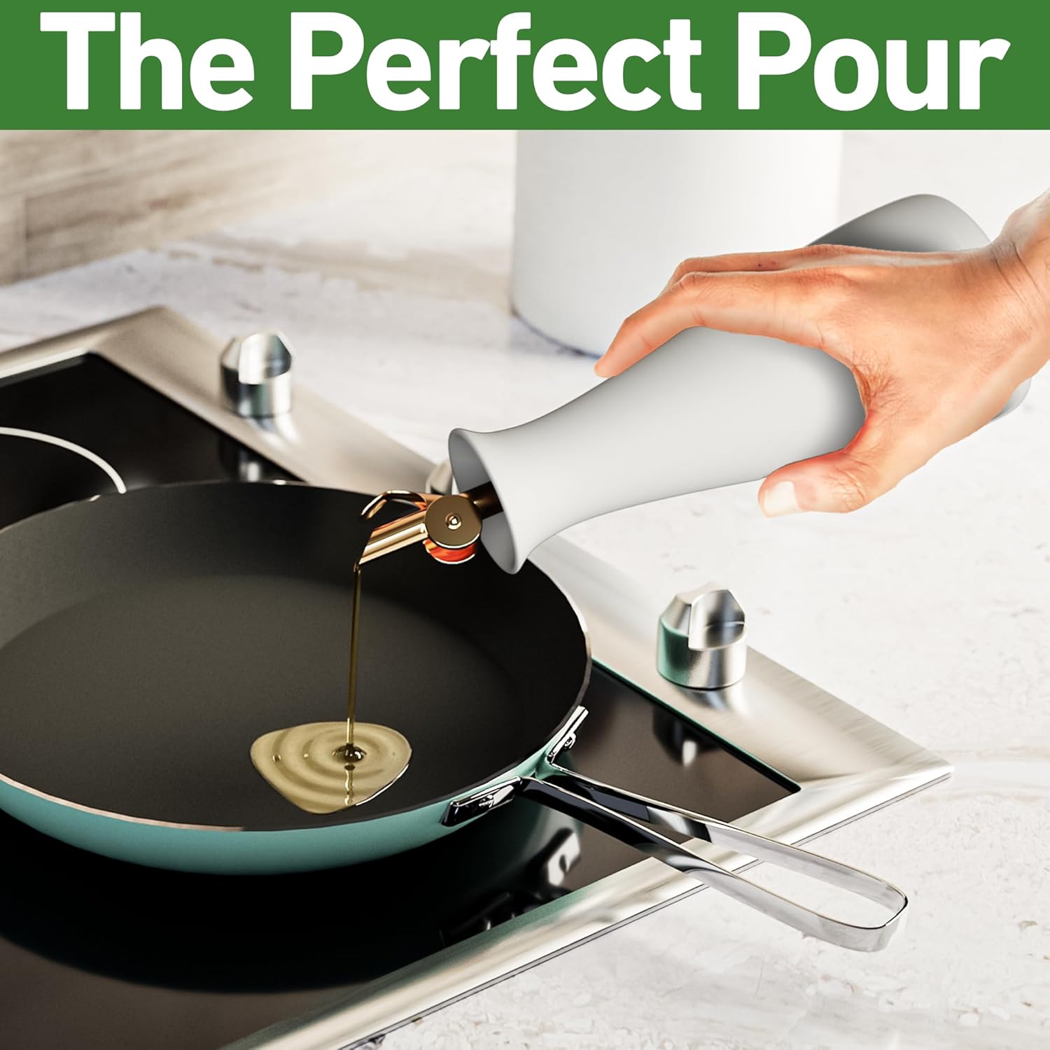 - 530 ML COOKING OIL BOTTLE WITH WIDE MOUTH & BASE - This large capacity kitchen oil bottle is the perfect size for cooking and displaying on your counter or table. The ergonomic design of this oil pourer makes it easy to pour, hold, carry and refill. To remove the spout, gently spin and pull.