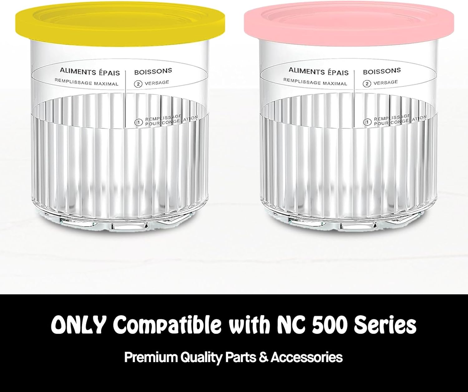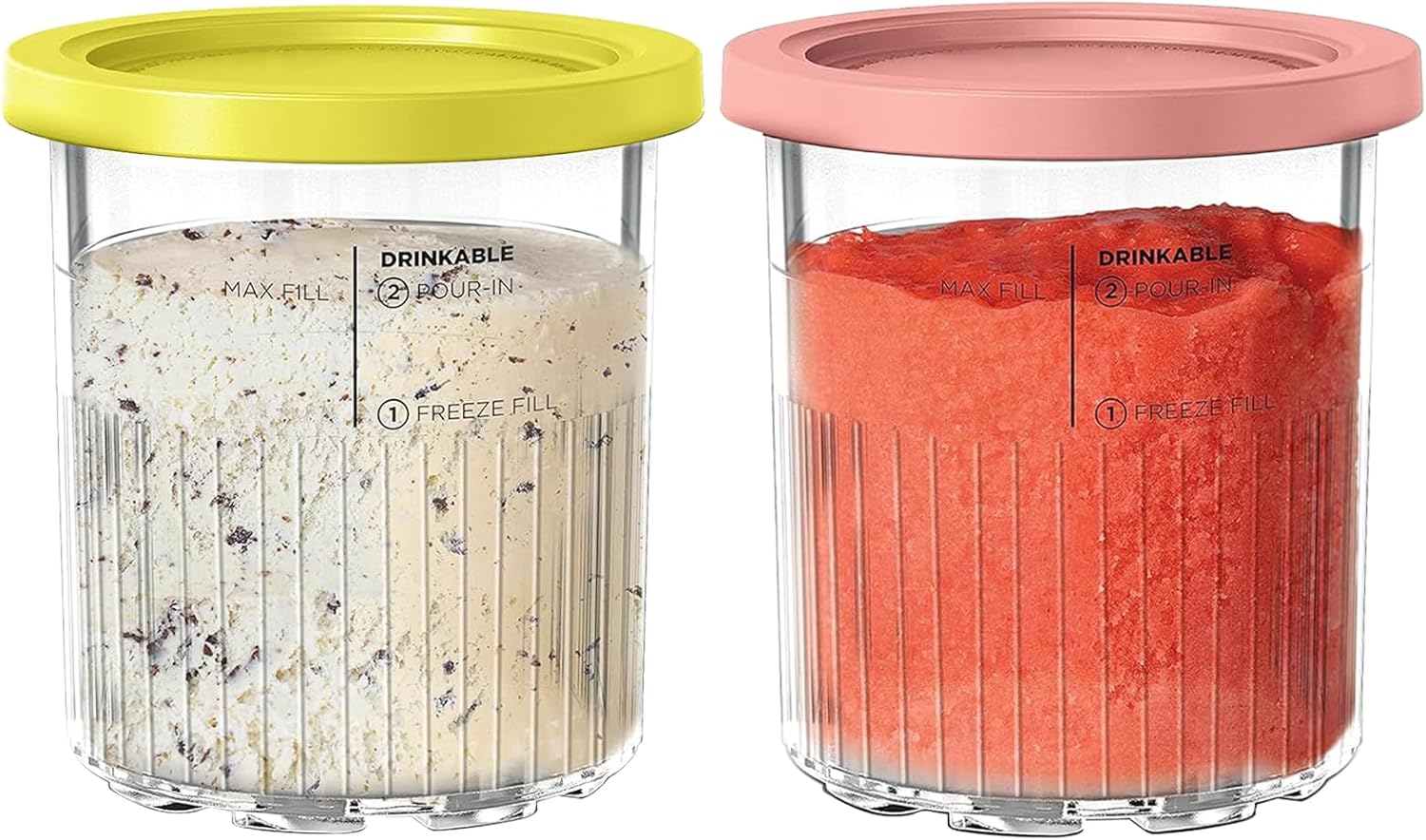 Pints Compatible with Ninja Creami NC500 Series Creami Deluxe Ice Cream Makers, BPA-Free & Dishwasher Safe, Color Lids, 2 Pack, 24OZ Family Ice Cream Storage Containers Clear/Coral/Yellow