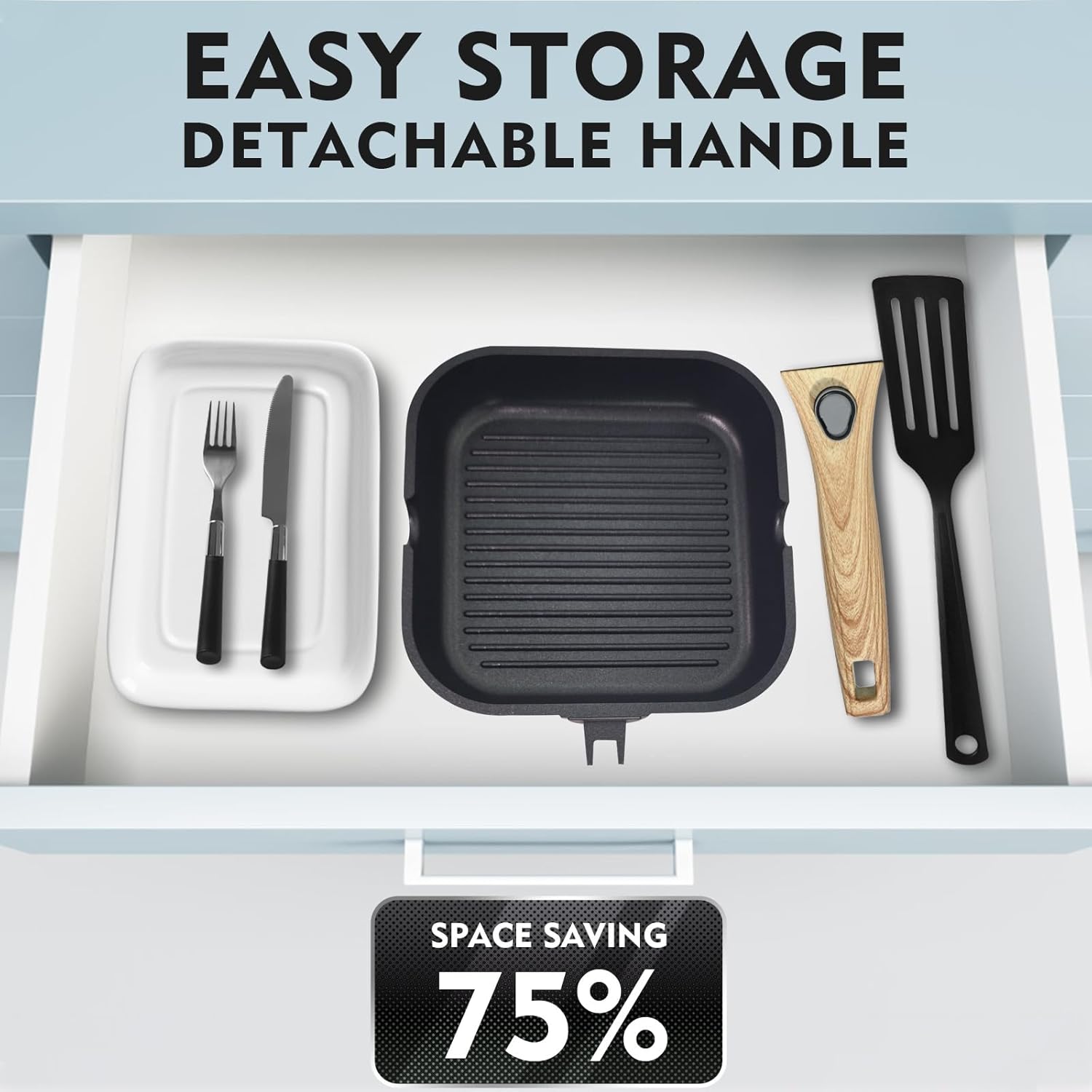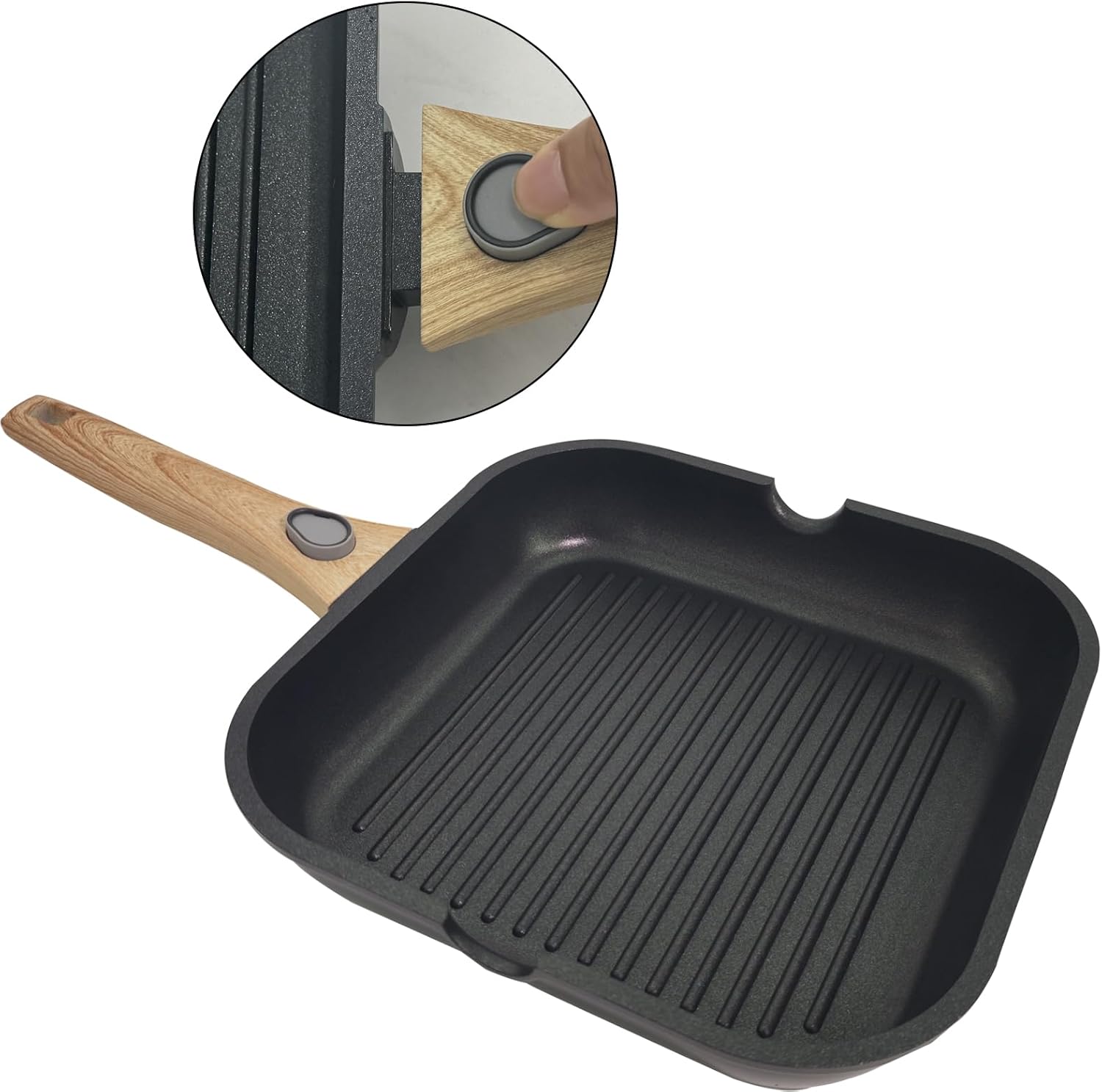Nonstick Square Grill Pan for Stove Tops, Detachable Handle Griddle Pan,9.5inch Remove Handle Grill Pan with Pour for Cooking,Induction,Gas,Non Toxic,PFOA Free(Granite, Square-9.5inch)