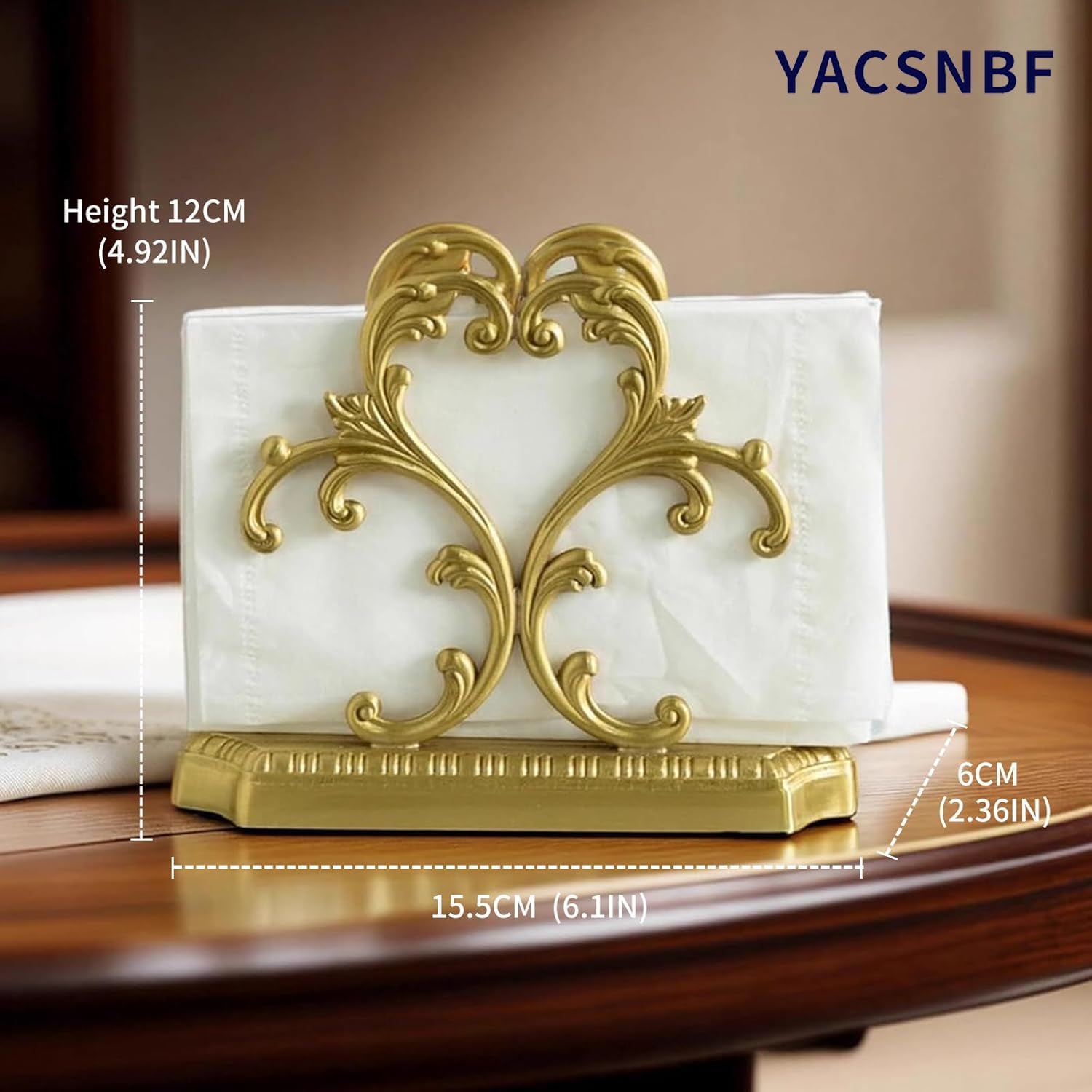- Decorative and Functional:A convenient solution for storing dispenser napkins easily at hand. High quality home decor napkin holder that you deserve to have.Material: Brass napkin holder. Color: Gold vintage napkin dispenser. No assembly required. Indoor use only.