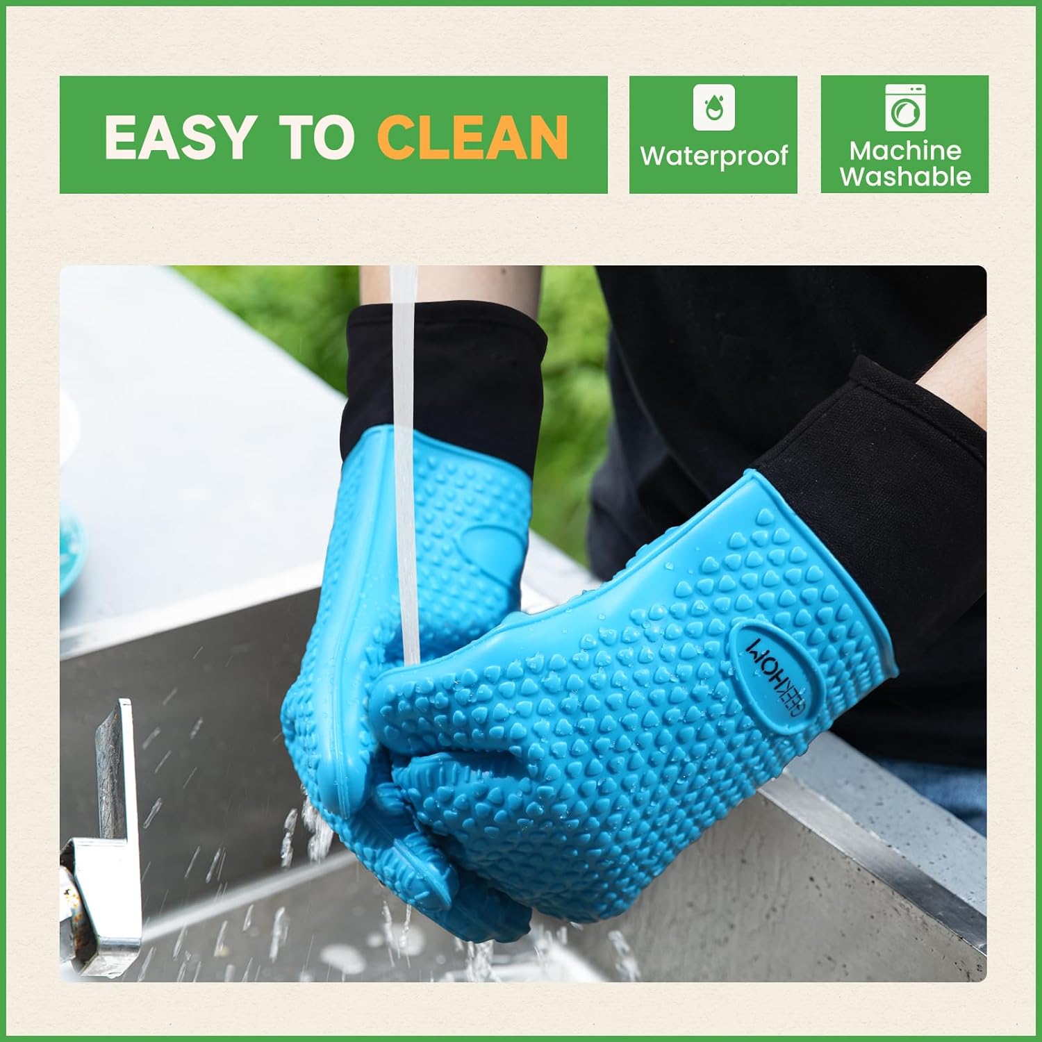 GEEKHOM BBQ Gloves Heat Resistant Oven Mitts - Silicone Grilling Gloves with 14" Long Arm Protection - Waterproof Pot Holder Non-Slip for Men & Women, Kitchen Cooking, Baking, Camping, Blue