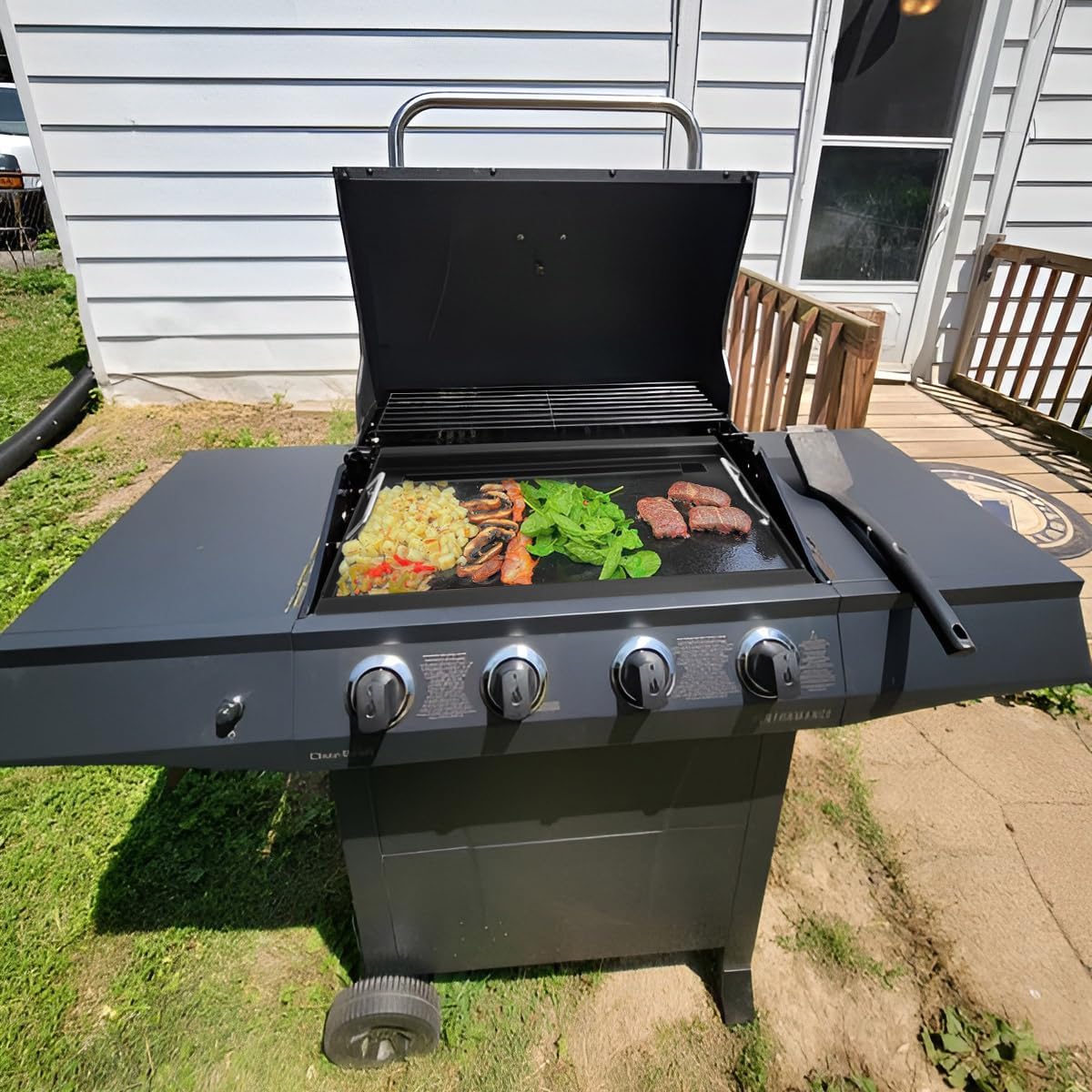 - 【Product Features】More strong corrosion, rust-proof and heat resistant. You can also cook some foods on the griddle that can't be cooked on the grill grid and experience the fun of both accessories at the same time.Heats your food evenly for great taste.Leave professional and beautiful sear marks on the food. Let you and your family enjoy BBQ more!