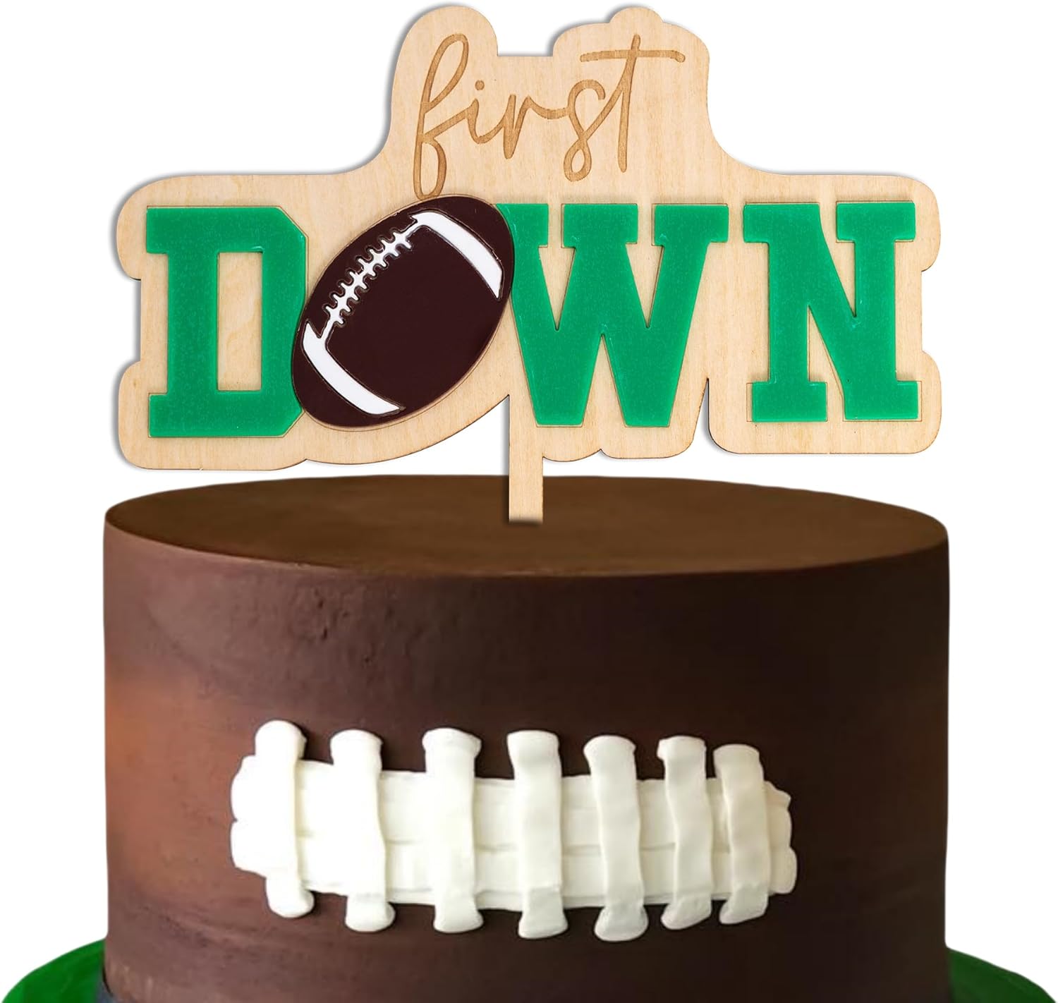 - First Birthday Cake Decorations: This football cake topper design with "First Down" letter and football pattern, make your baby's first birthday party adorable. Design to match football, first year down, sports themed birthday party