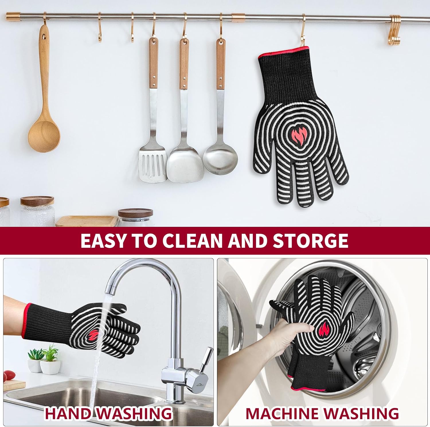- Heat Resistant: Our heat resistant grilling gloves can stably provide the ultra protection against heat up to 932°F, So these bbq gloves are perfect for all grilling occasions, fireplace, cooking, baking, microwave, handling hot items, etc