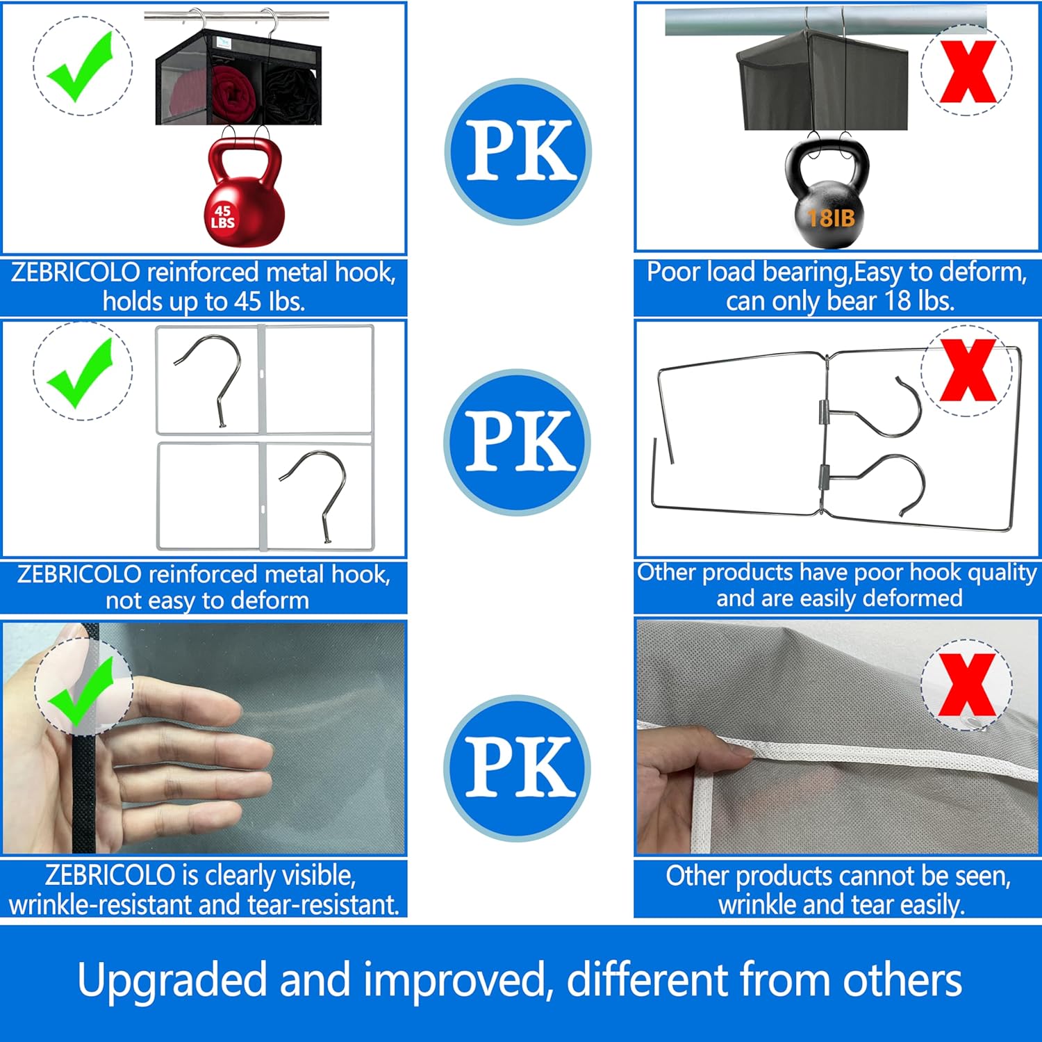 - Material thickened non-woven fabricďź âThicken Metal Hooks : Mounting Type hanging closet organizer
