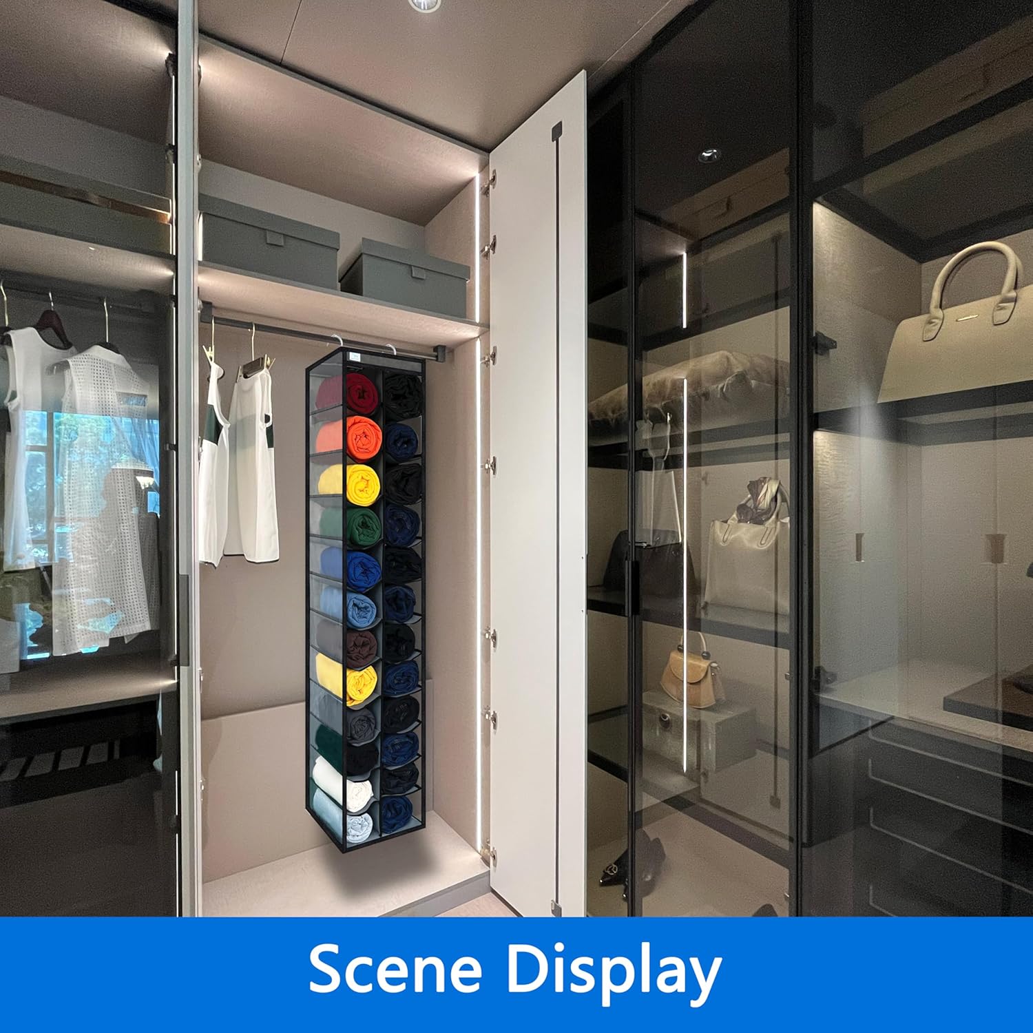 - ăAmple Storage Spaceăhanging closet organizer, 24 compartments, this closet organize provides plenty of room for all your clothes and other accessories,Free up space for your closet, cloakroom, wardrobe, dormitory, and more. Or take this foldable bins in rv trip, hiking and camping closet organizers and storage.