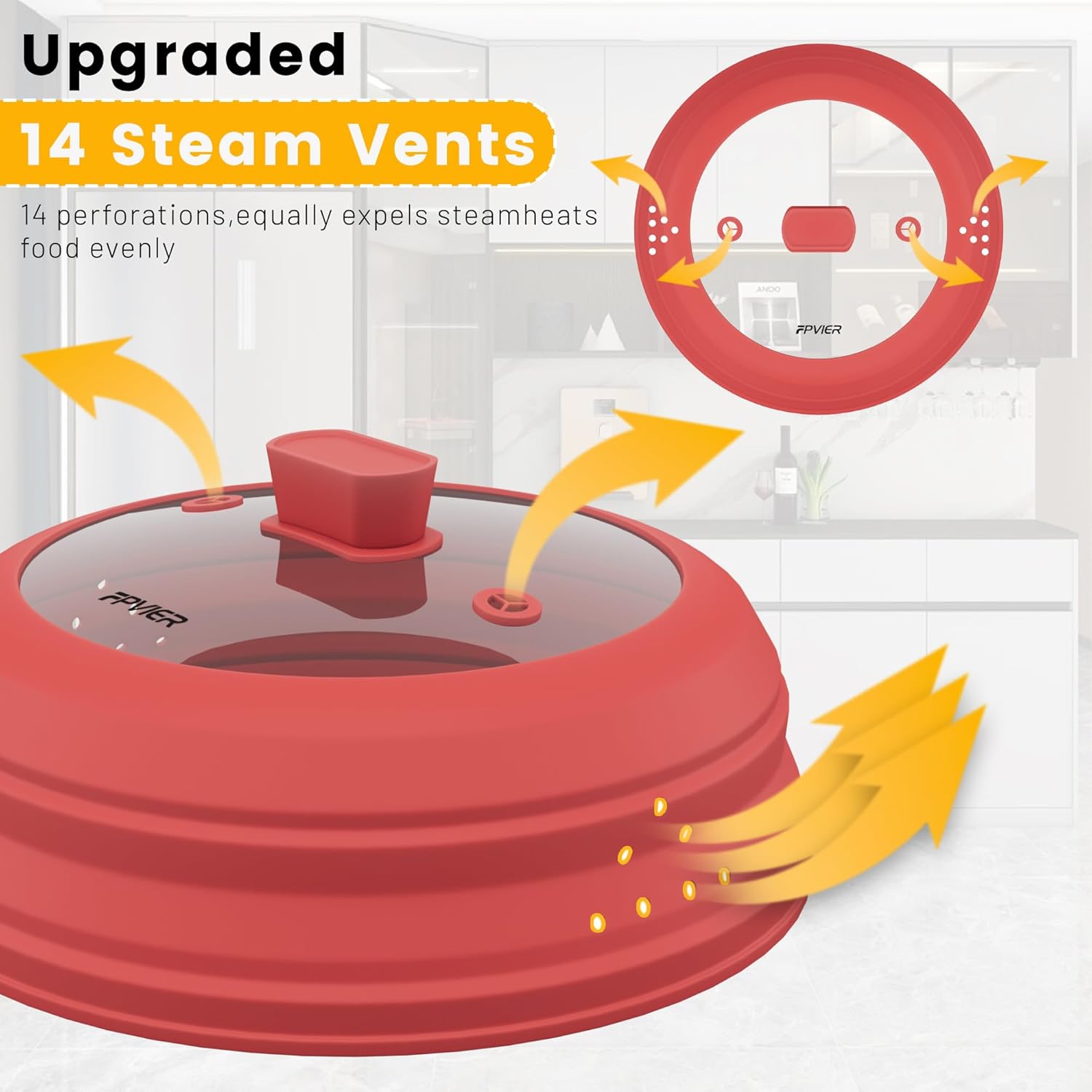 - 【Upgraded 16 Steam Vents】 Compared to the regular one, our upgraded microwave food cover has 14 extra side steam vents. Your food will be no more wet with this upgraded collapsible microwave splatter cover.
