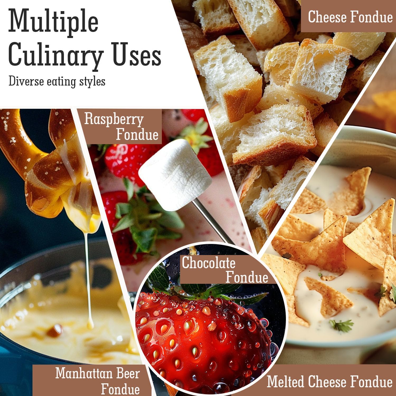 - IDEAL FONDUE with FAMILY - Perfect for gatherings, date nights, or family celebrations, this fondue pot combines style and functionality to create a delightful culinary adventure. Enjoy perfectly melted cheese, chocolate, broth, or oil fondue with your favorite fixings. Perfect for sharing, this set comes with six color-coded fondue forks so you know which is yours.