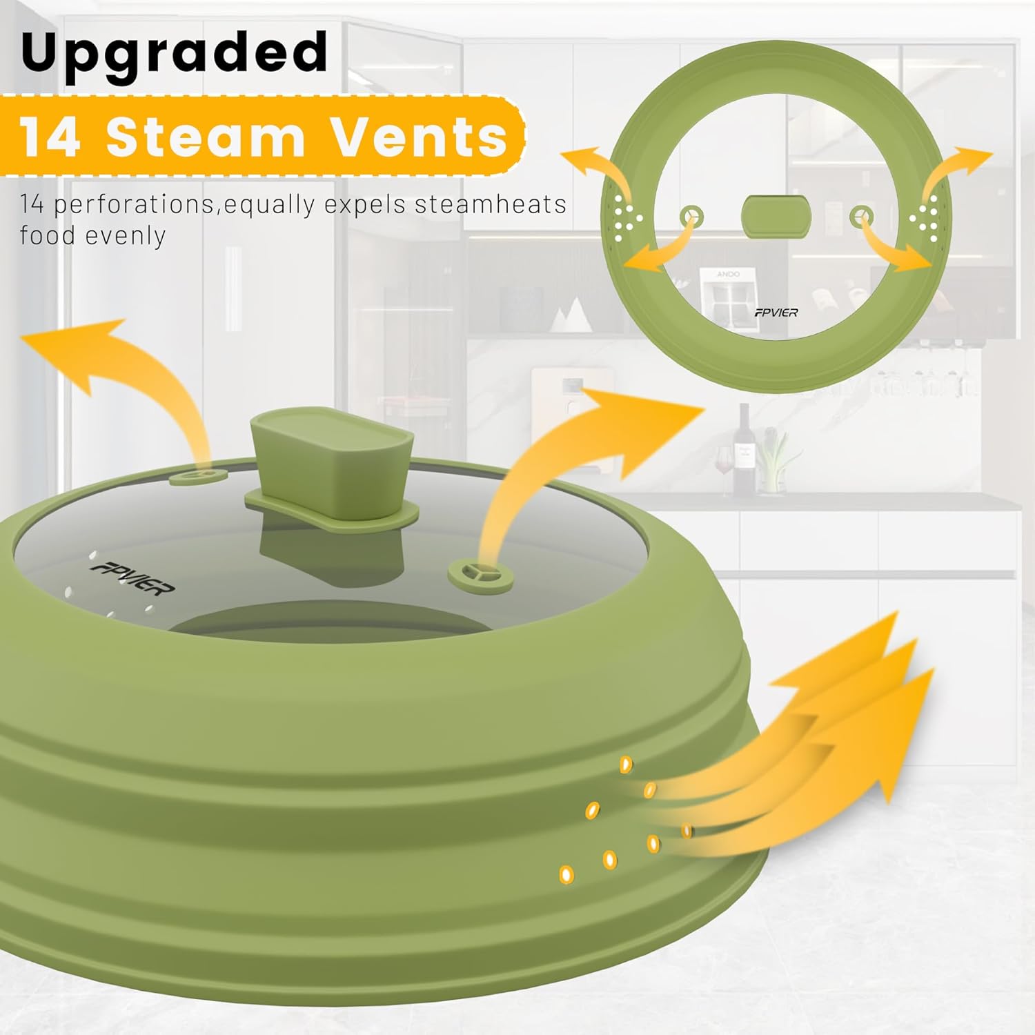 - 【Upgraded 16 Steam Vents】 Compared to the regular one, our upgraded microwave food cover has 14 extra side steam vents. Your food will be no more wet with this upgraded collapsible microwave splatter cover.