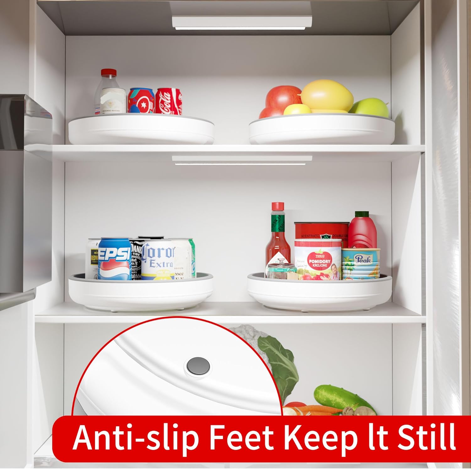 - Package Include: 4 Pack 10 Inch lazy susan organizer. Easily rotating plastic lazy susan turntable for pantry organizers and storage includes non-skid beaded surfaces with anti-slip base feet