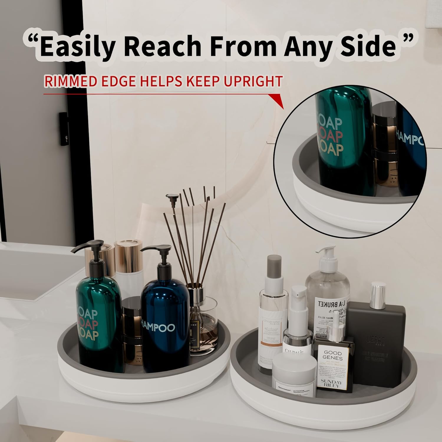 - Multifunctional Turntable Organizer - Perfect spinning lazy susan organizer for kitchen, pantry storage, dining room, bathroom countertop, table, under the sink, refrigerator, cabinet closet,etc. You can organize such as spice jars, oil bottles, drinks, toiletries, cosmetics, etc