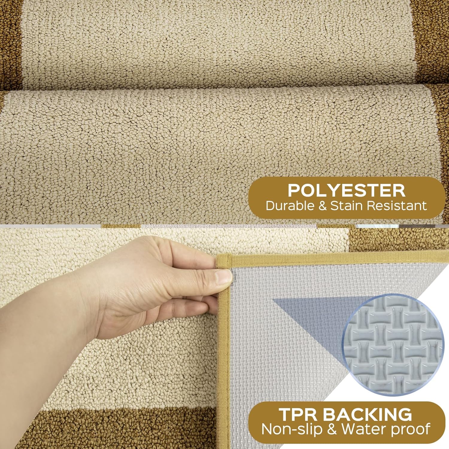 - SOFT & DURABLE: The indoor kitchen rug is made of high quality polyester which is durable, stain resistant, super absorbent, and comfortable to walk on. It's soft to the touch, warm and skin-friendly. Dive into the unparalleled softness of our rug!