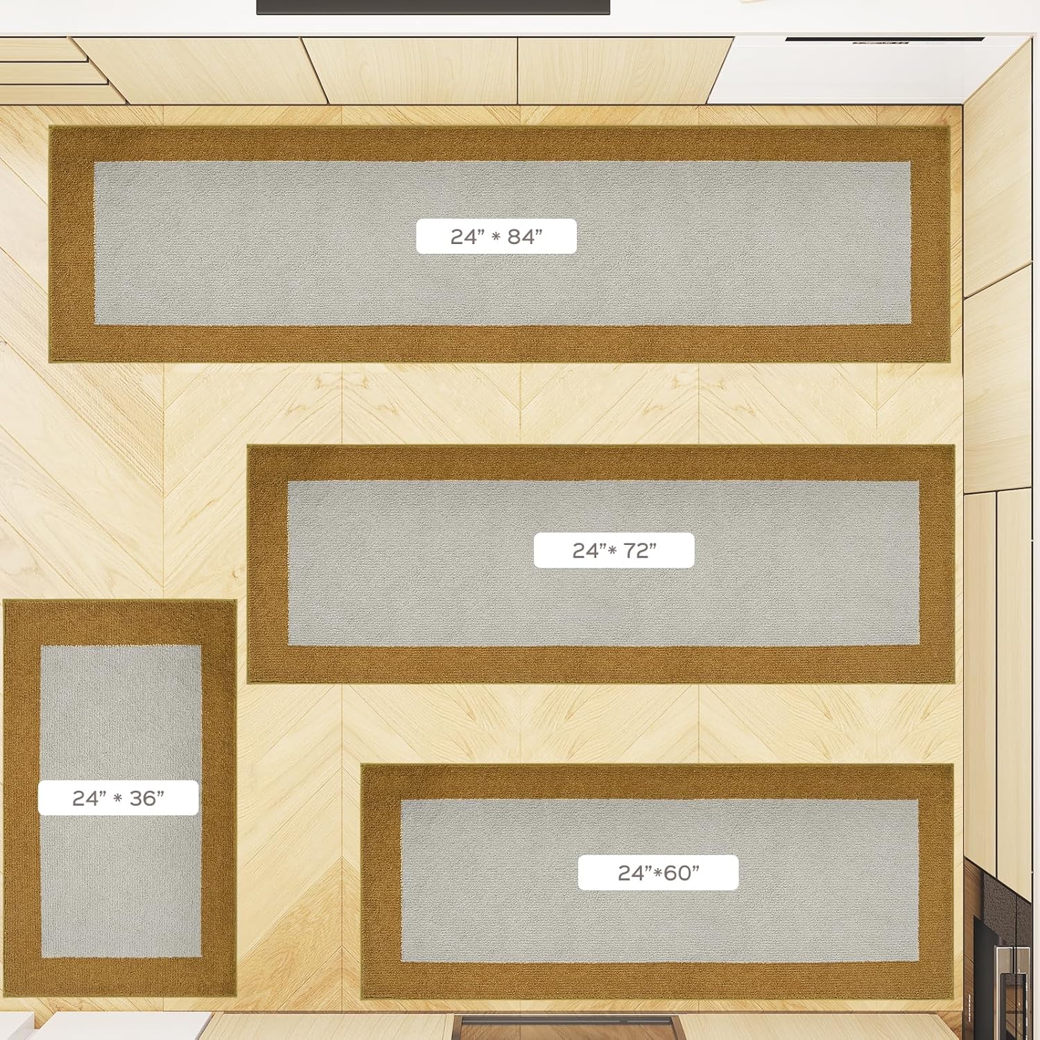 Machine Washable Runner Rugs Set of 2, (24" x 36"+ 24" x 60"), Non Slip Kitchen Mats for Floor, Absorbent Entryway Rug for Kitchen, Bedroom, Hallway, Bathroom, Door (Roll Packing)