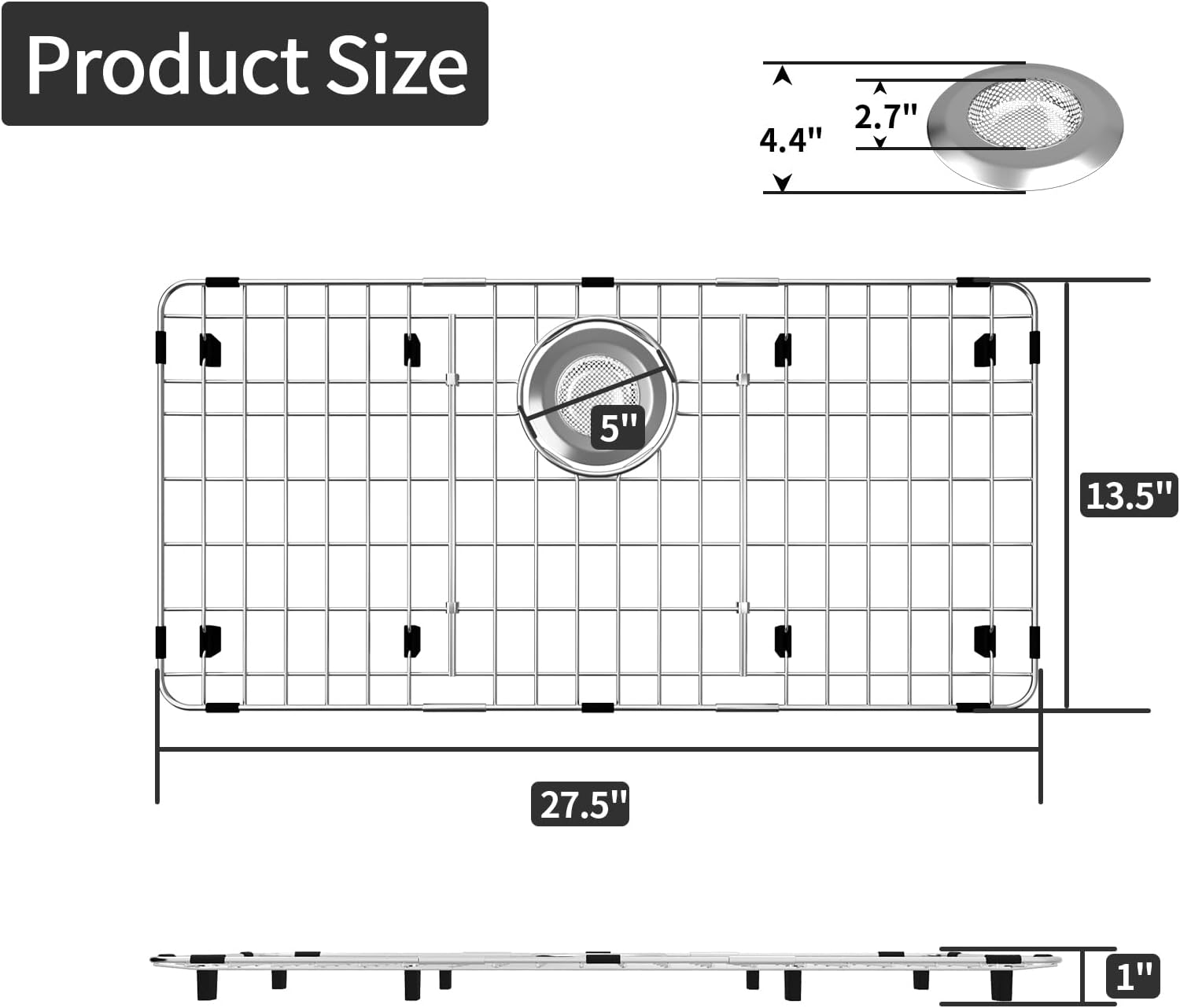 27.5’’ x 13.5’’ Stainless Steel Sink Protector, Sink Protectors for Kitchen Sink, Sink Grid, Sink Grate for Bottom with Rear Drain, Metal Sink Rack for Bottom of Sink with Corner Radius