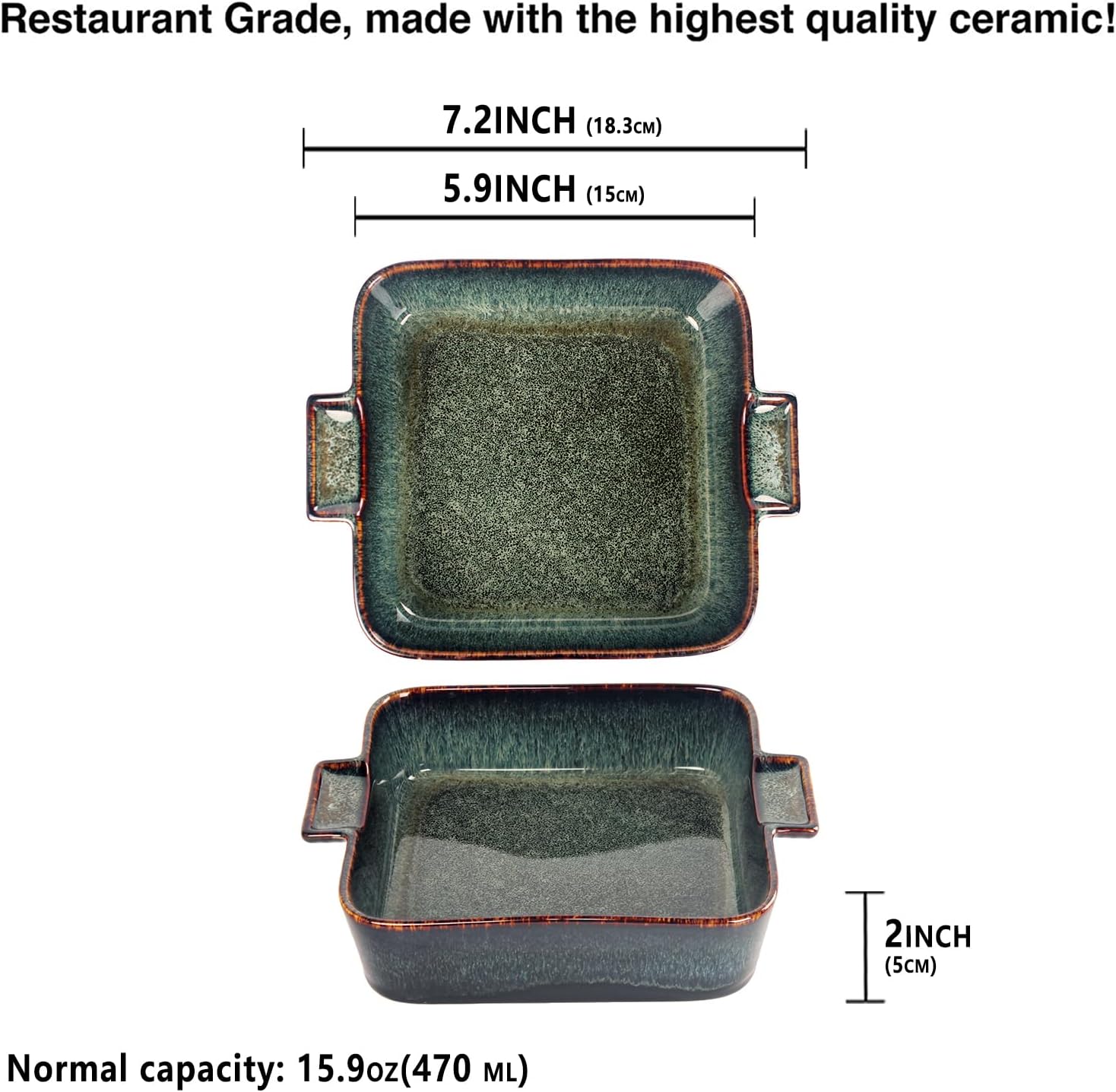 Ceramic Casserole Baking Dish - 16 Ounces Baking Dish for Oven, Lasagna Pans, Oven Safe Durable Bakeware for Kitchen Home Decor, Banquet and Dinner, Square 2 pieces 5.5 x 5.5 Inch