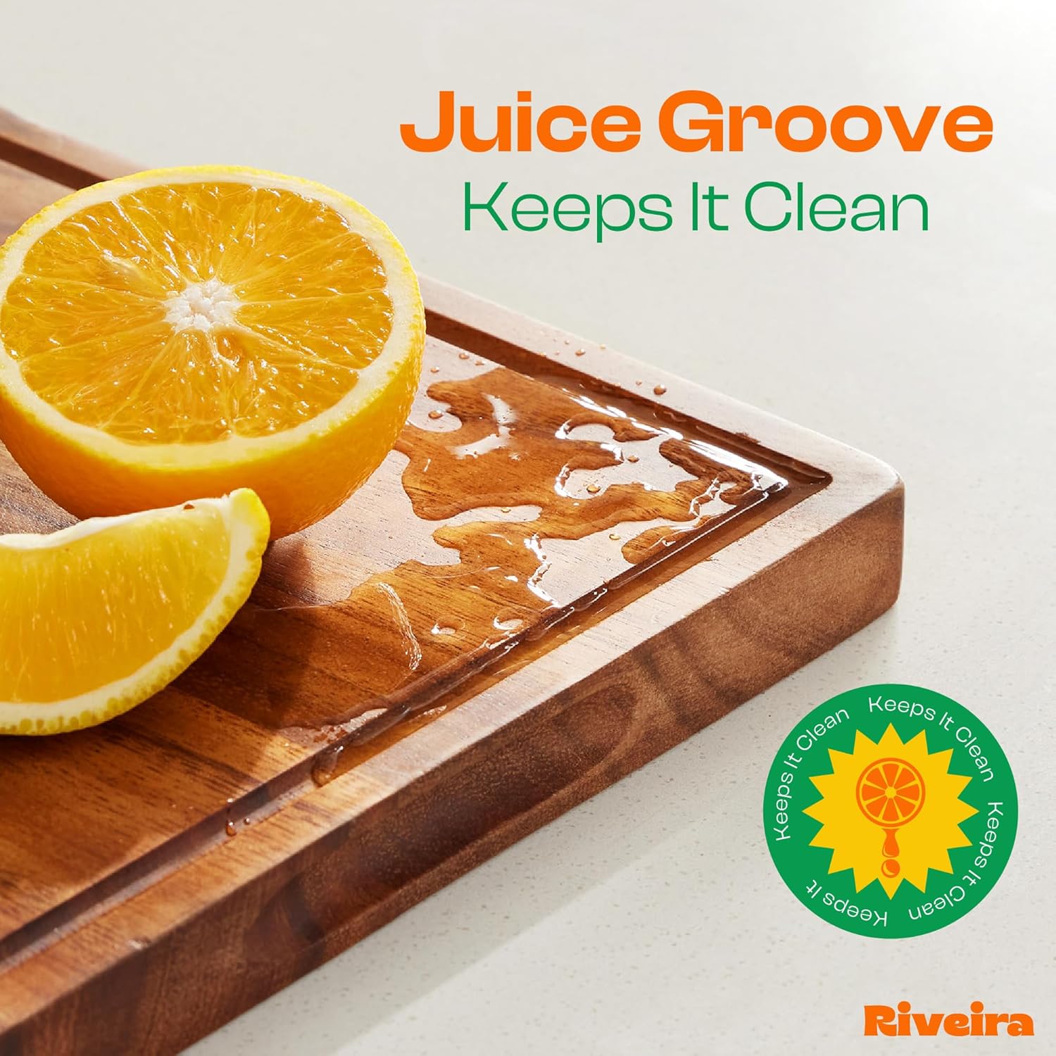- Handle Everything with Confidence — The built-in handle holds of the walnut cutting boards are designed for handling everything with confidence and easy maneuvering. Pre-oiled and ready for immediate bewilderment, this wooden chopping board is not just convenient for the kitchen mess but has a unique design to maintain, ensuring a performance that is both comfortable and clean for chopping boards for kitchen. Riviera non toxic cutting boards for kitchen will be perfect in your kitchen.